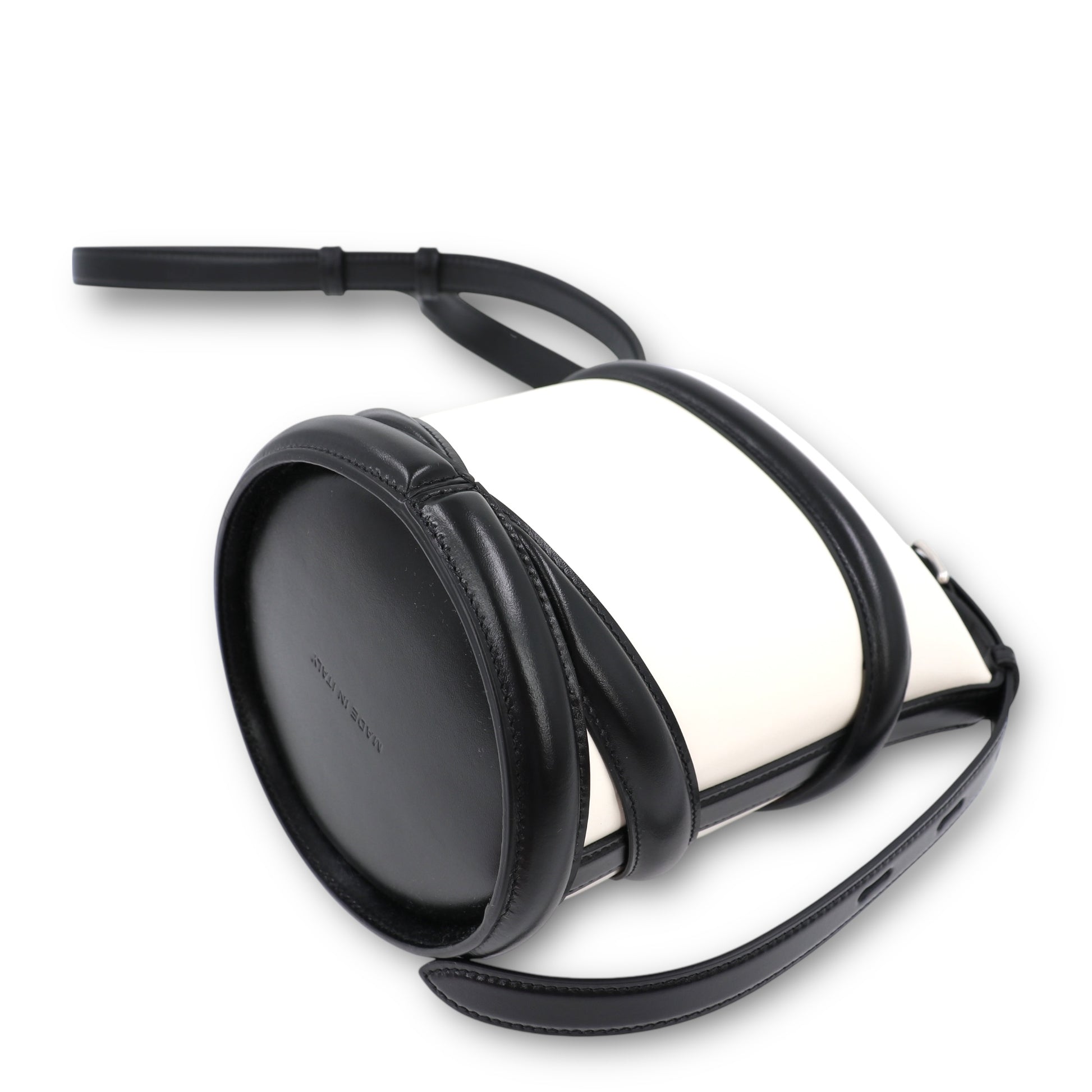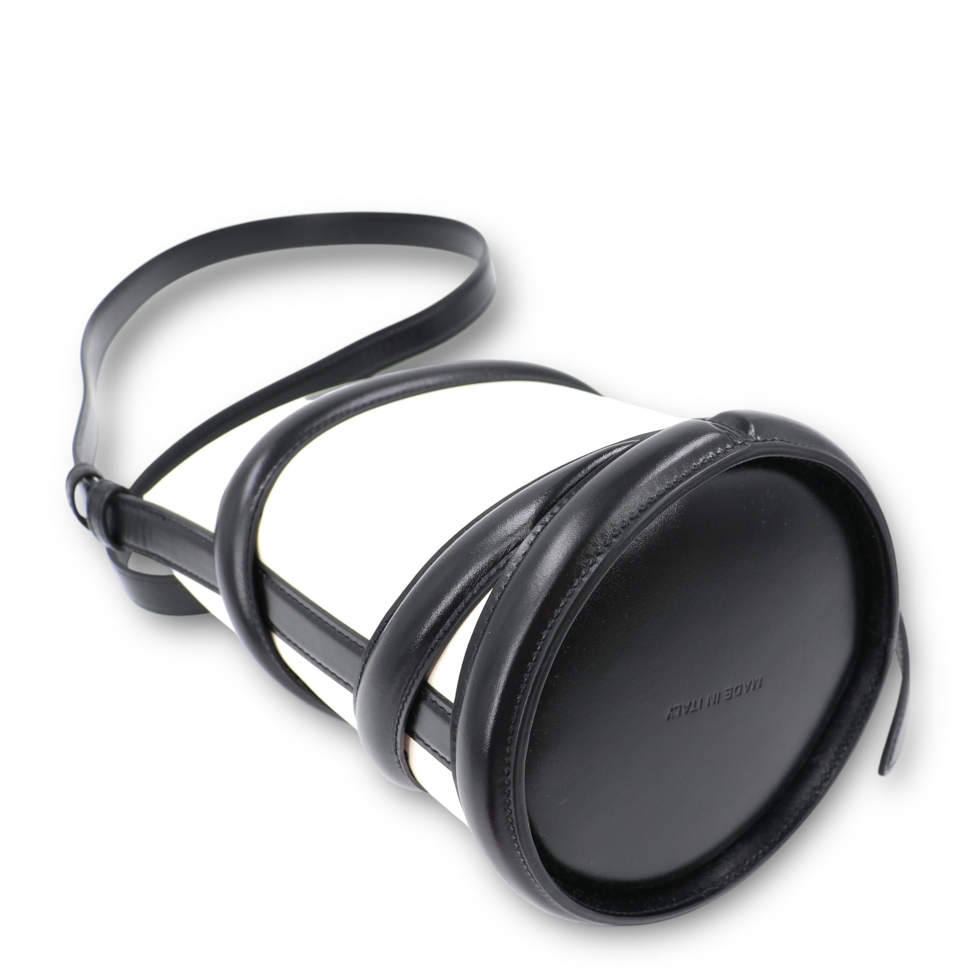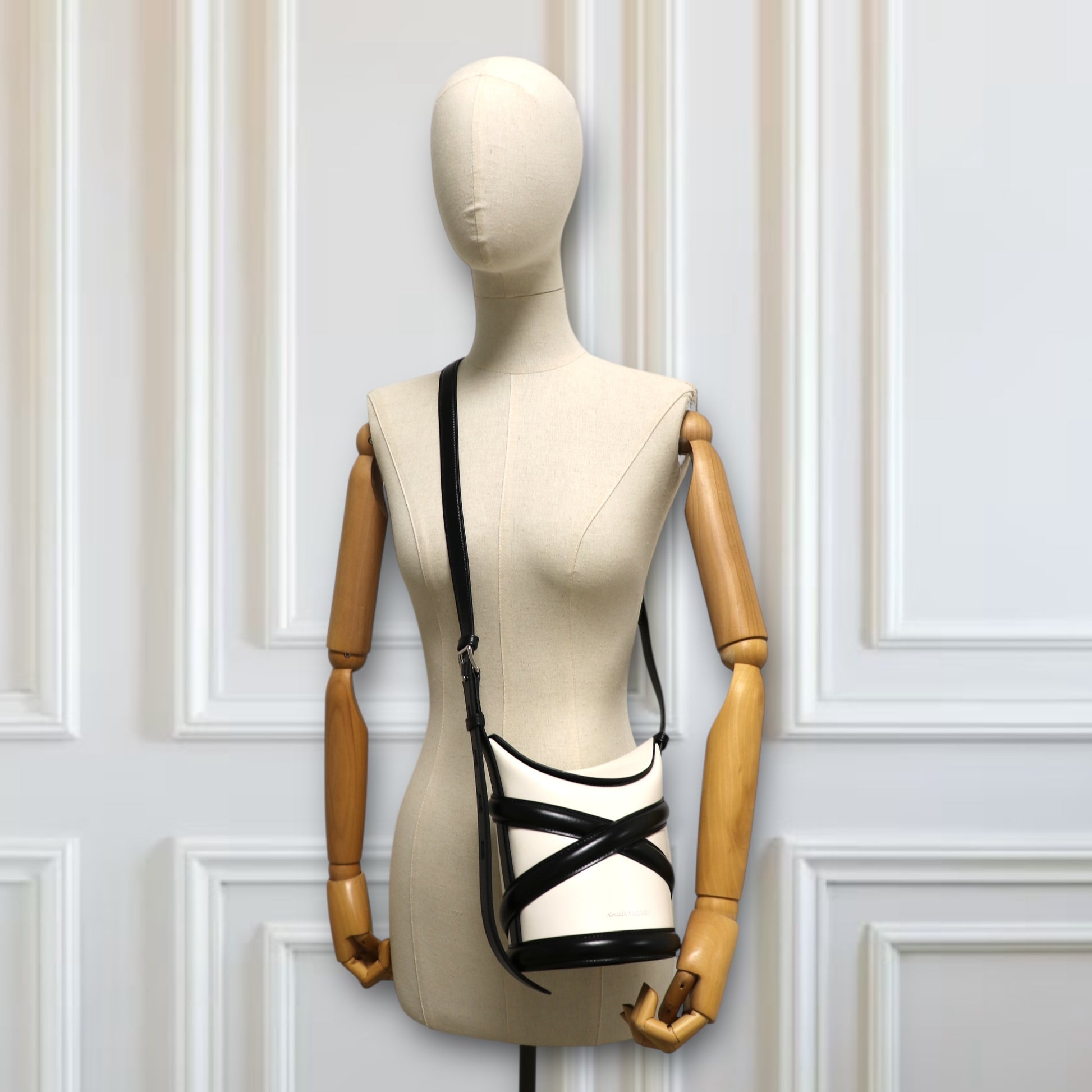 Dieses Modell aus Elfenbein- und schwarzem Kalbsleder überzeugt durch seinen Magnetverschluss und den verstellbaren Lederriemen, der sowohl einfach als auch doppelt getragen werden kann. Die Logo-Prägung auf der Vorderseite unterstreicht die Eleganz. Im Inneren sorgt das schwarze Lederfutter für einen edlen Look, während das geräumige Hauptfach und ein Kartenfach für Ordnung und Funktionalität stehen.