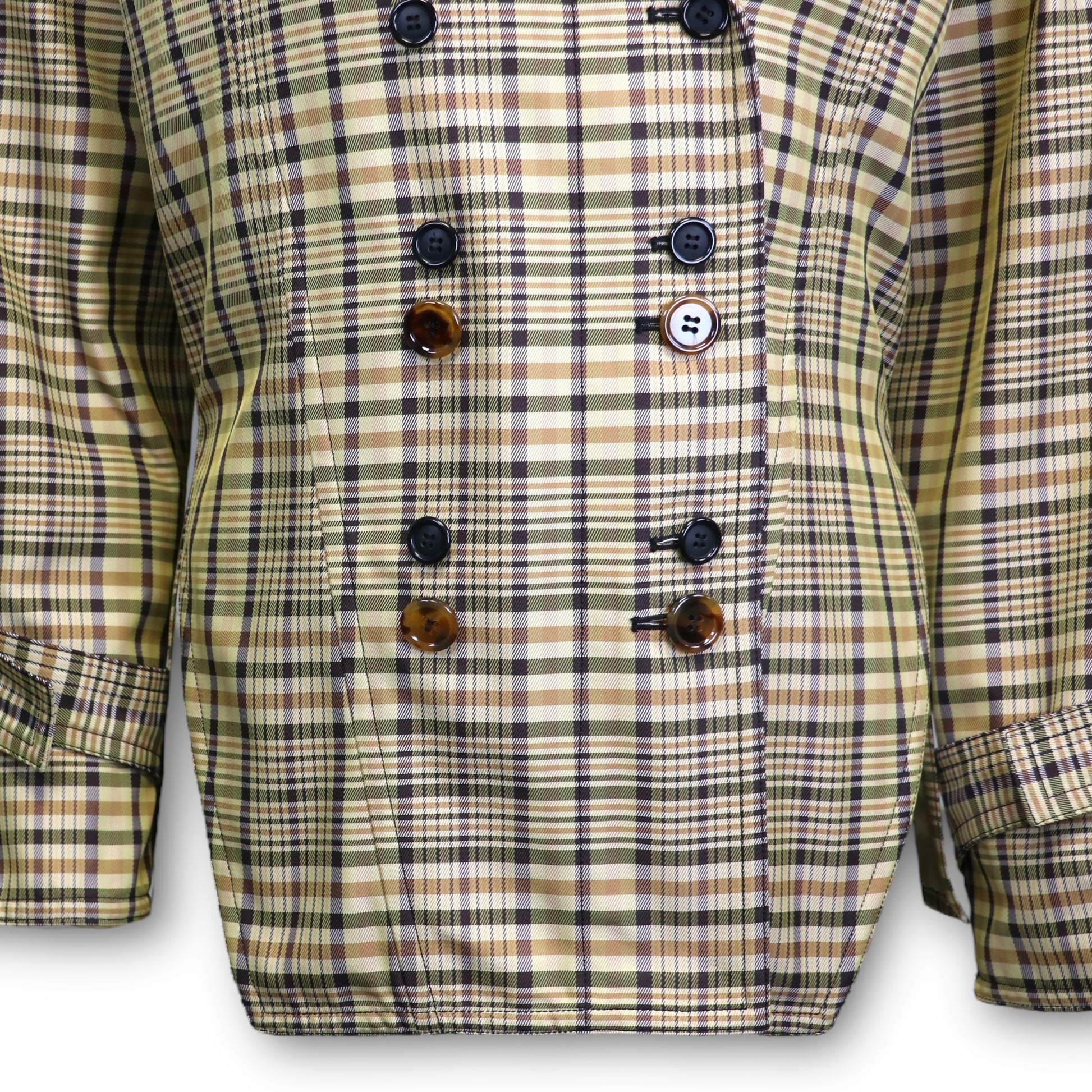 Dieses modische Jacke überzeugt mit einem klassischen Karomuster in warmen Beige- und Brauntönen. Die doppelte Knopfleiste und der markante Reverskragen verleihen dem Piece eine zeitlose, leicht maskulin angehauchte Eleganz – perfekt für stilvolle Alltagslooks oder besondere Auftritte.