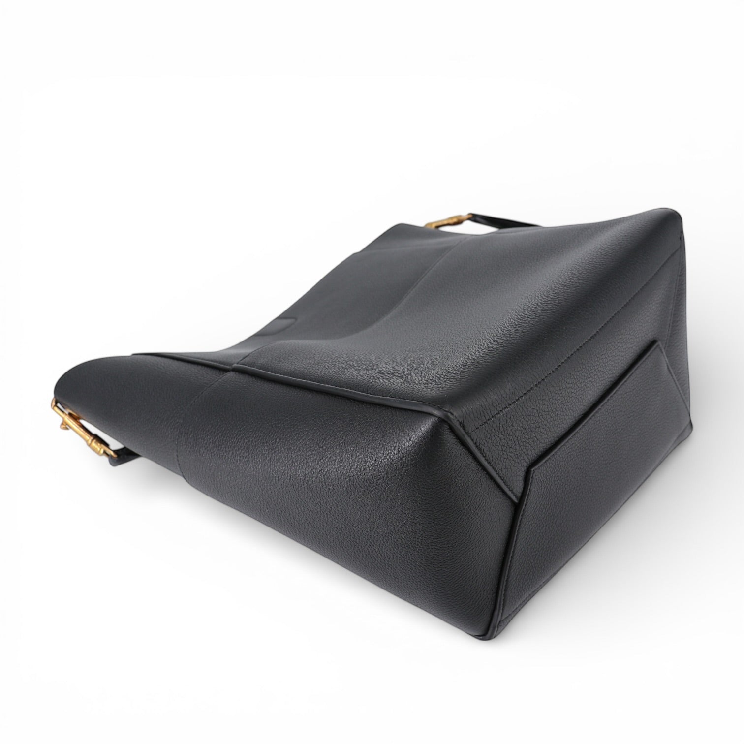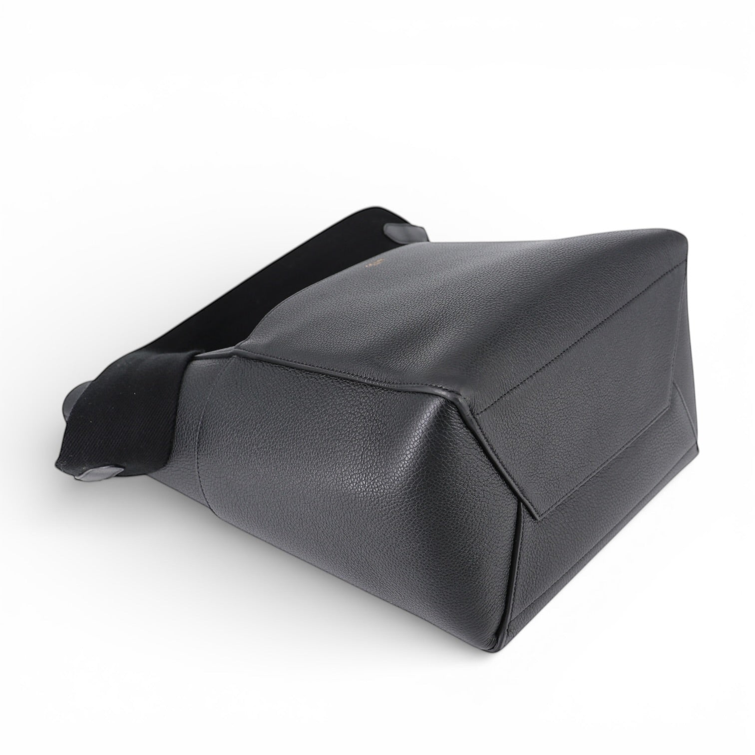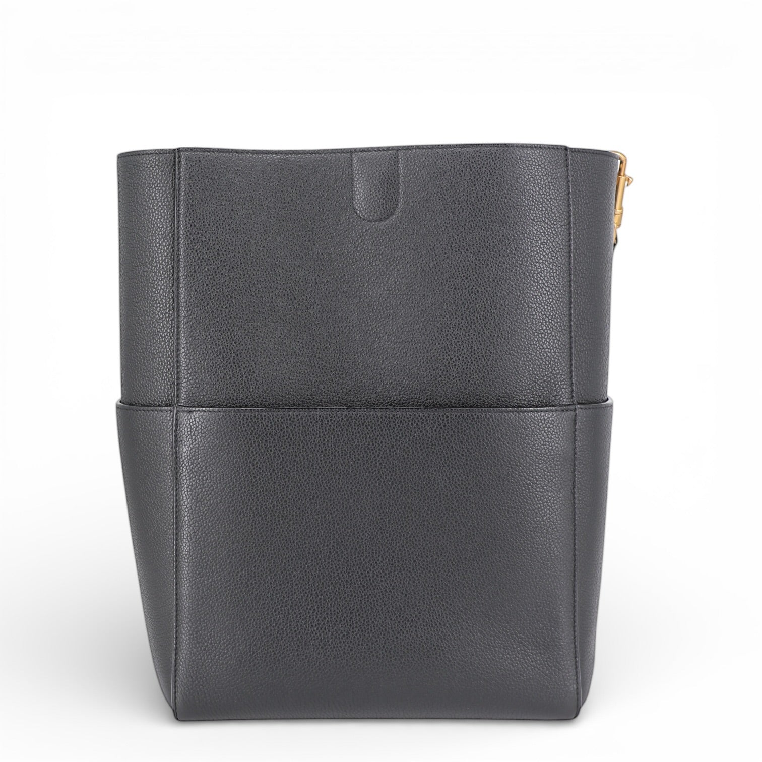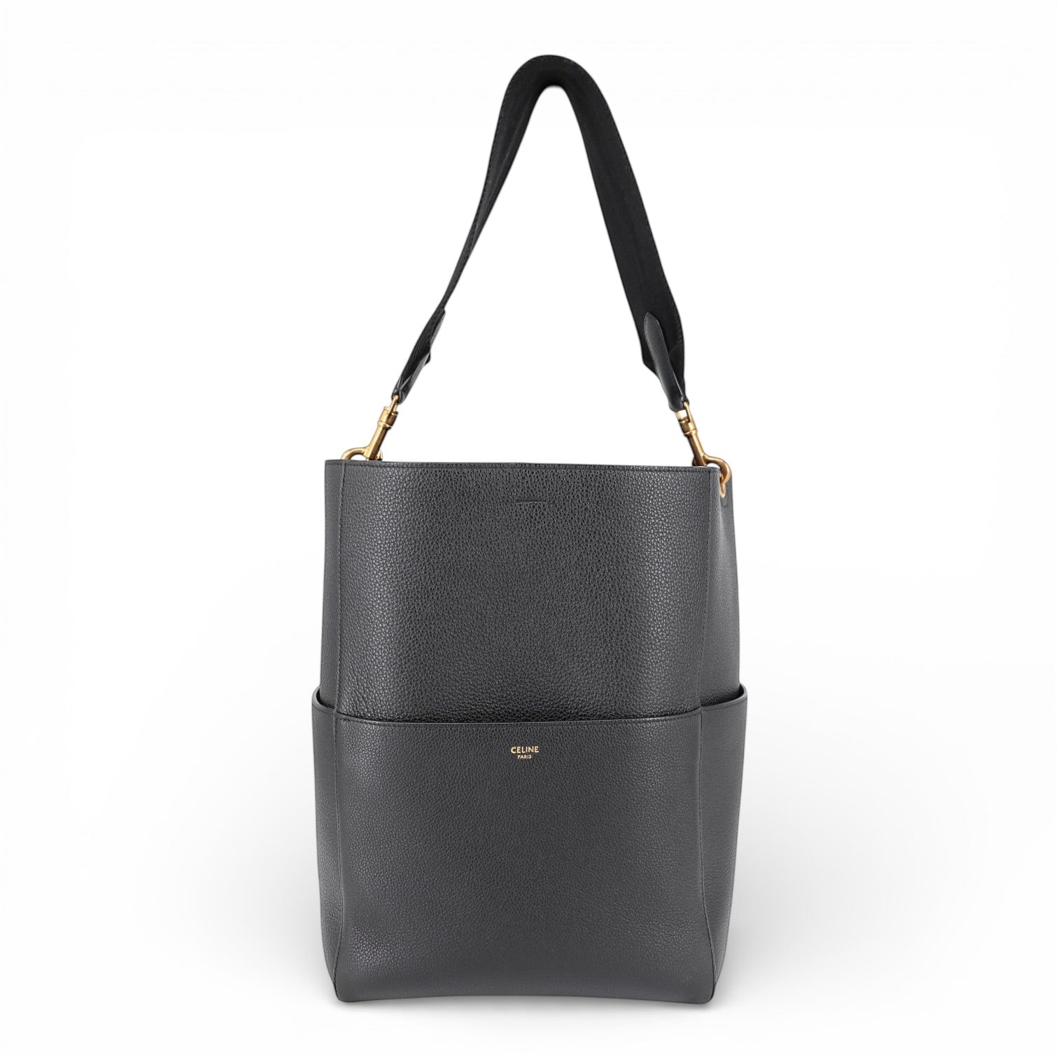 Diese elegante Beuteltasche Seau Sangle von Céline überzeugt durch ihr minimalistisches Design und ihre funktionale Aufteilung. Gefertigt aus hochwertigem, schwarzem Leder, besticht die Tasche durch ihre klare Linienführung und die feine, leicht genarbte Lederstruktur, die dem Modell eine zeitlose und zugleich moderne Ausstrahlung verleiht.