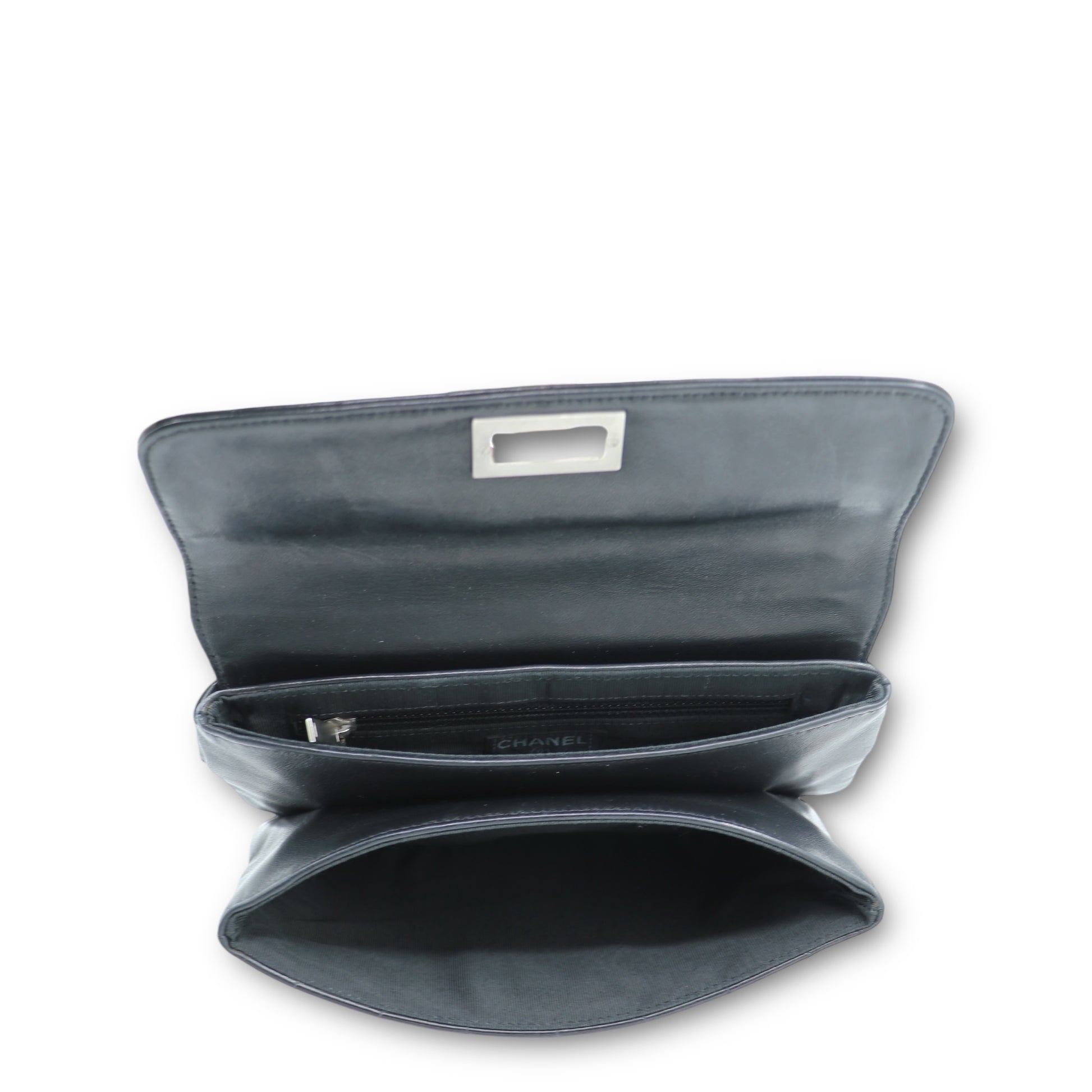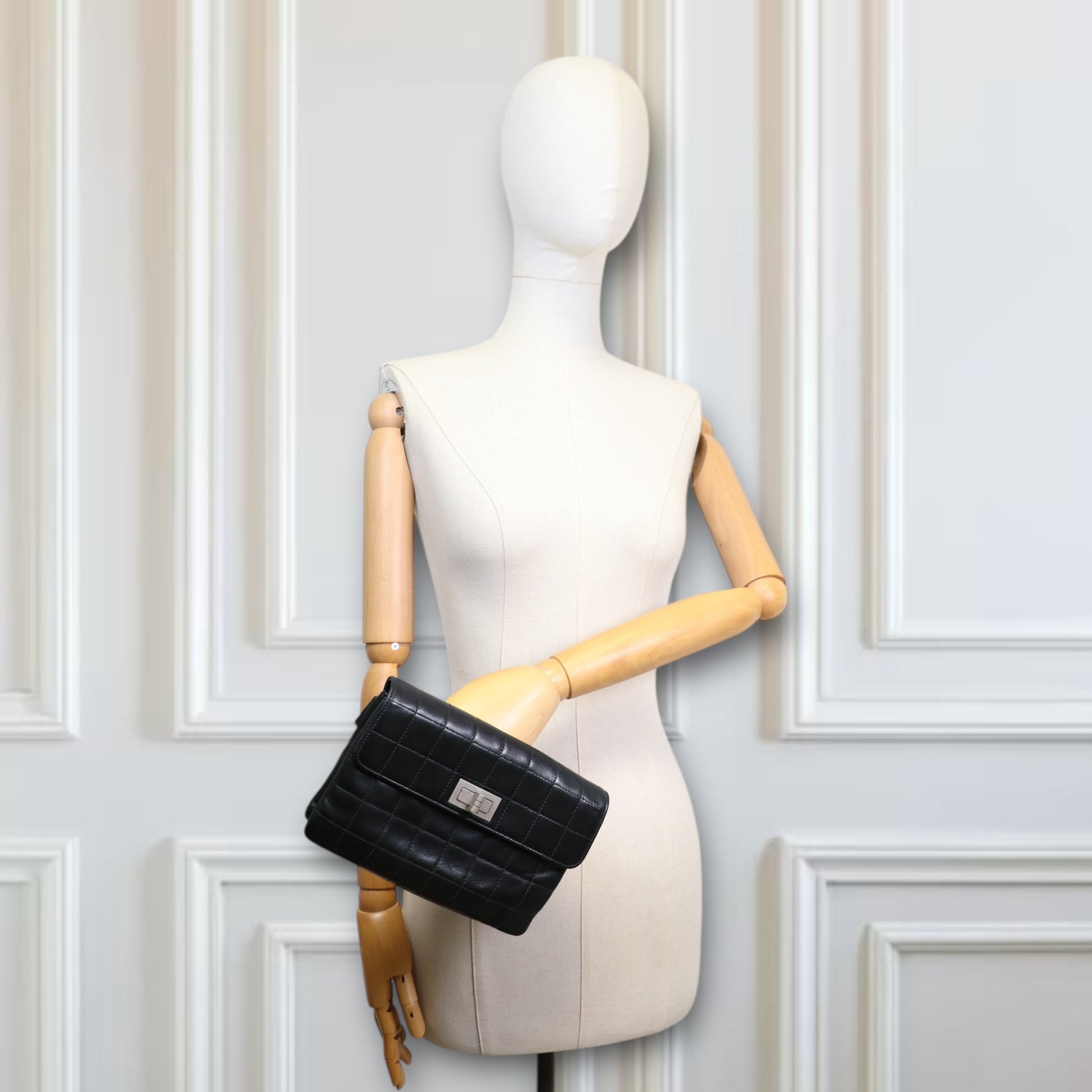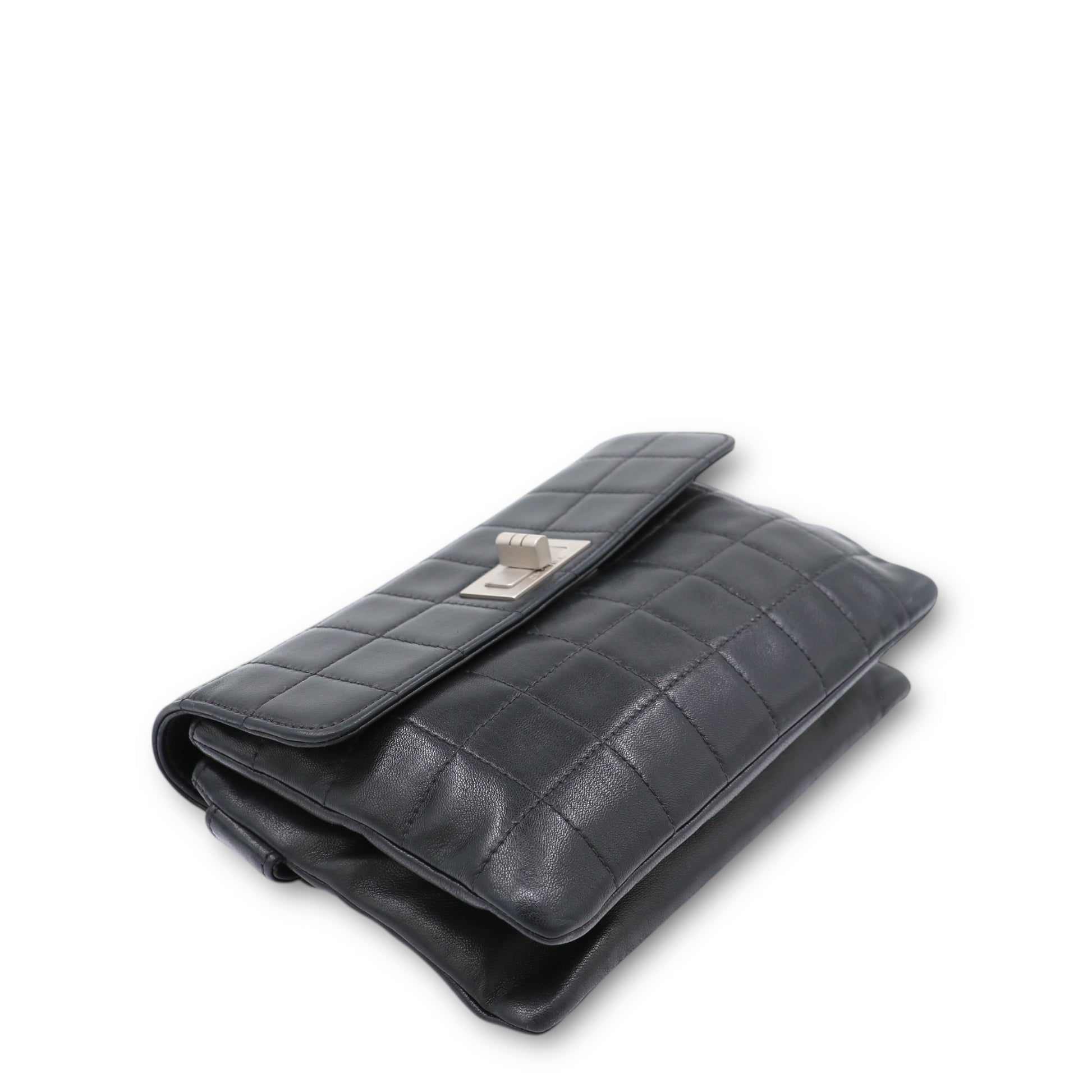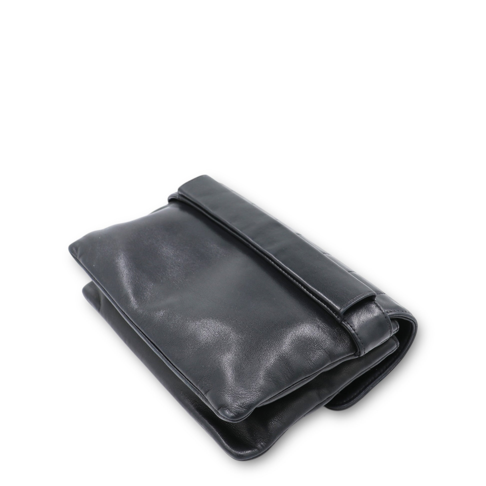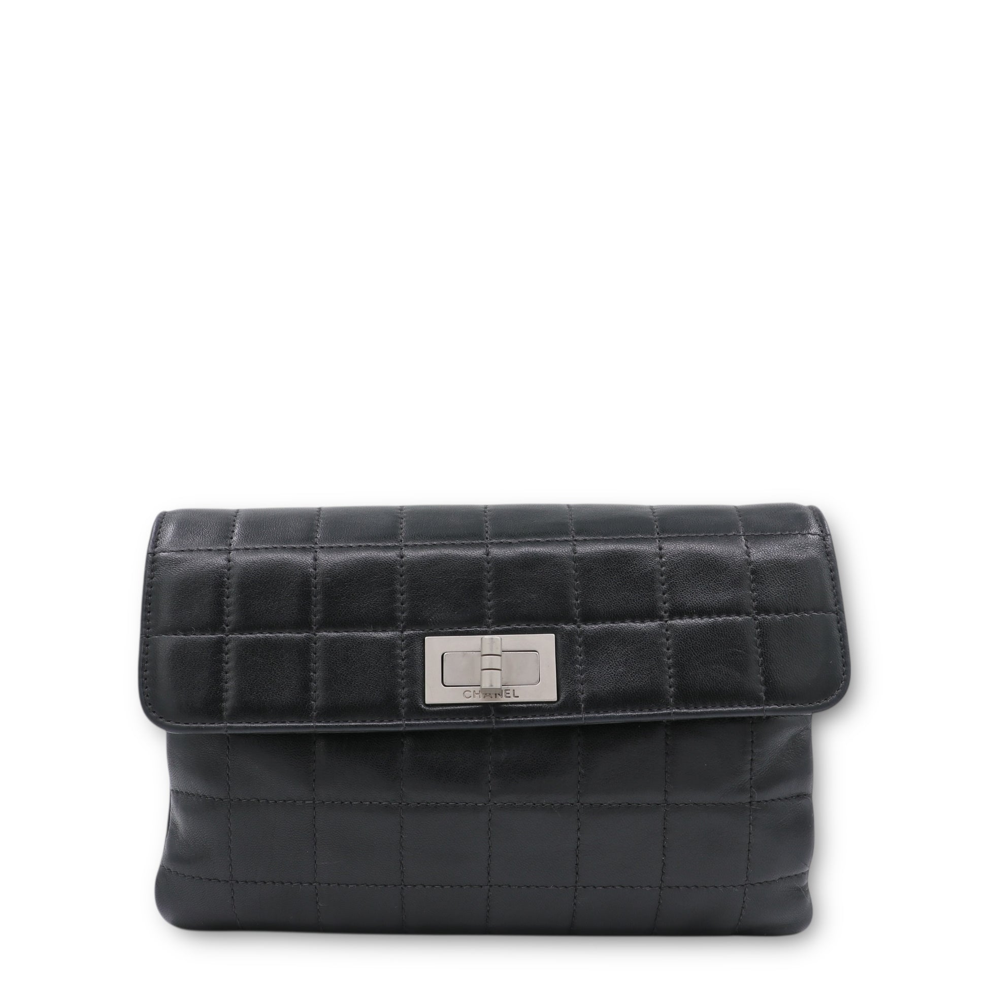 Diese elegante Clutch von Chanel stammt aus der begehrten Chocolate Bar Kollektion und überzeugt durch ihr zeitloses Design sowie ihre durchdachte Funktionalität. Gefertigt aus hochwertigem, schwarzem Lammleder, besticht sie durch die charakteristische, gleichmässige Steppung, die an eine feine Schokoladentafel erinnert und der Clutch eine edle, moderne Ausstrahlung verleiht.