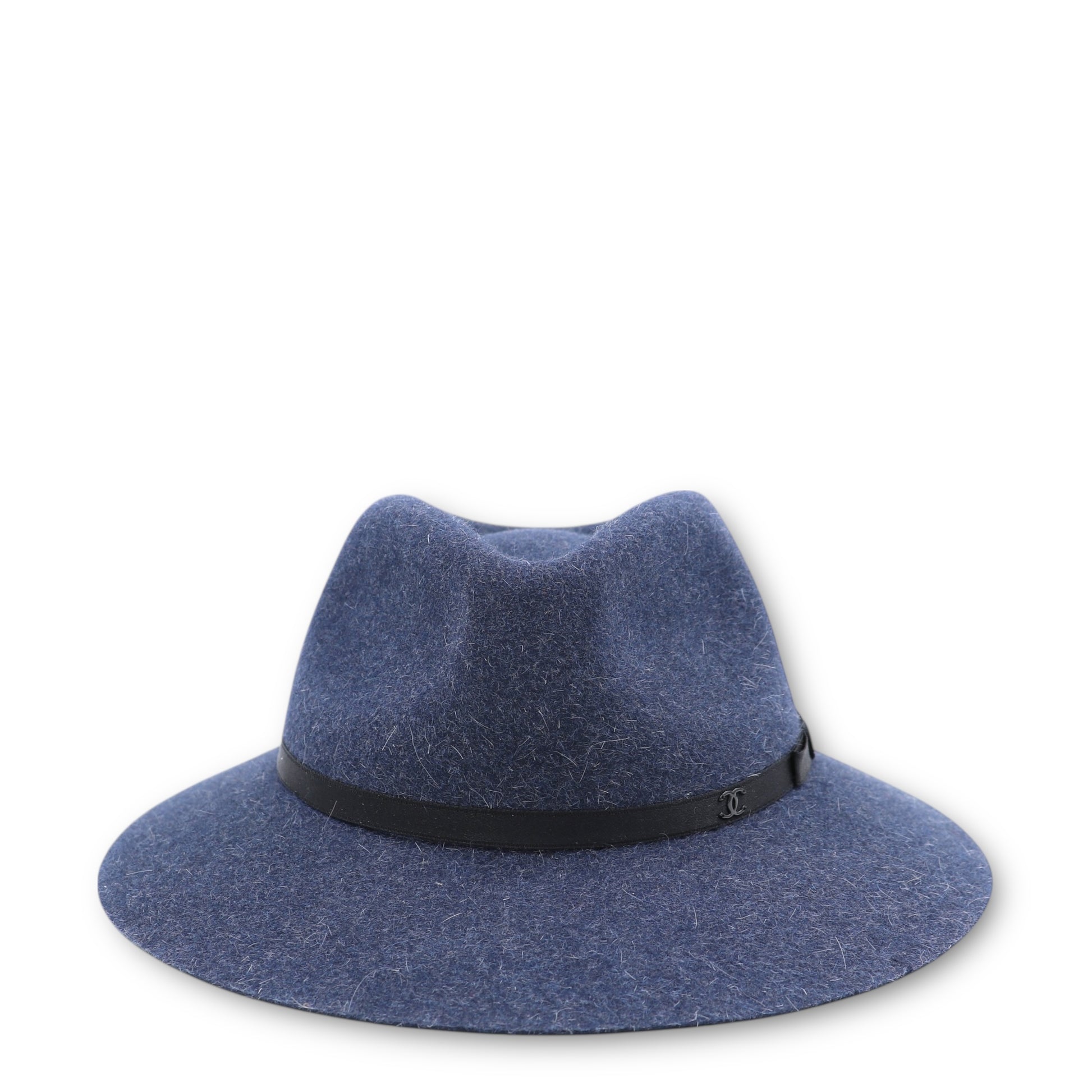 Der klassische Fedora-Stil mit elegant geformter Krone und leicht geschwungener Krempe verleiht dem Hut eine stilvolle, moderne Ausstrahlung. Akzentuiert wird das Design durch ein schmales schwarzes Ripsband, das mit einem dezenten CC-Logo veredelt ist – ein subtiler, aber unverkennbarer Hinweis auf die ikonische Herkunft dieses Accessoires. Die Kombination aus tiefem Blau und Schwarz wirkt besonders edel und vielseitig kombinierbar.