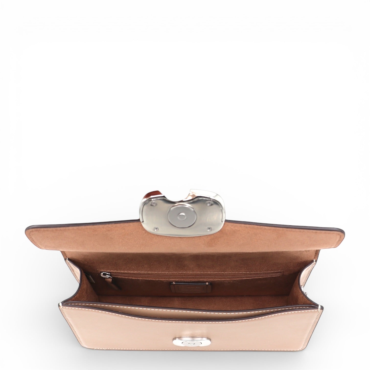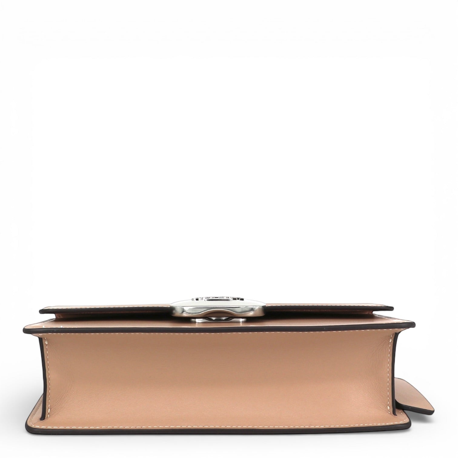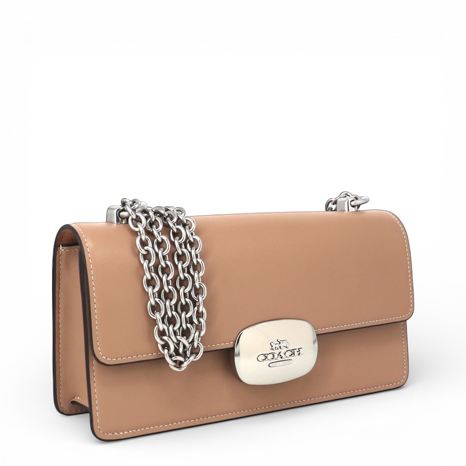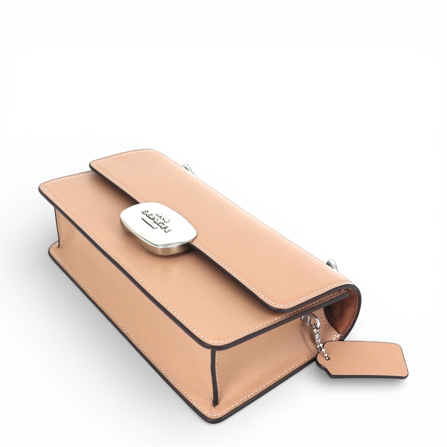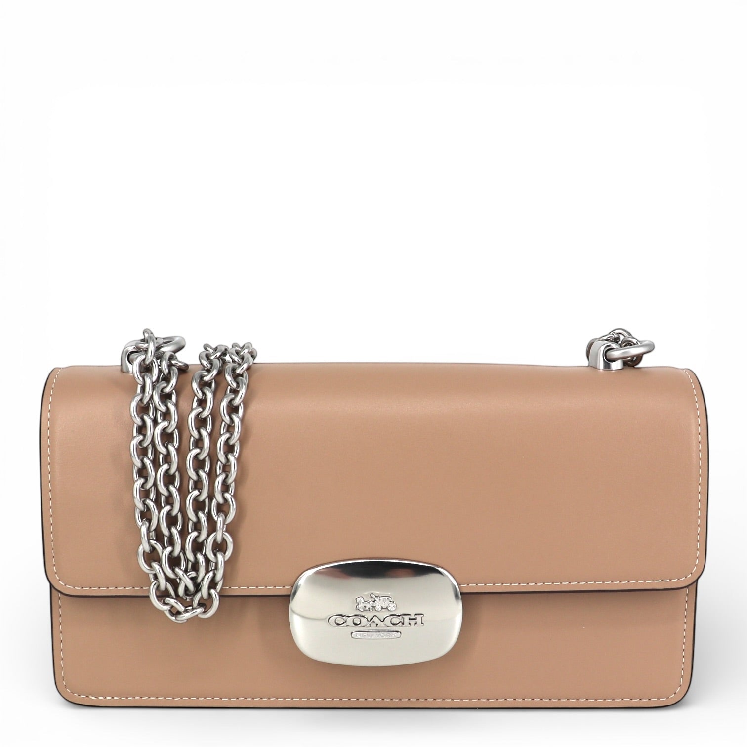 Die „Eliza“ von Coach vereint zeitlose Eleganz mit modernem City-Chic. Mit ihrer klaren Linienführung, dem edlen hellbraunen Leder und den markanten silberfarbenen Metallakzenten ist sie ein stilvoller Begleiter für Alltag und Abend gleichermassen.
