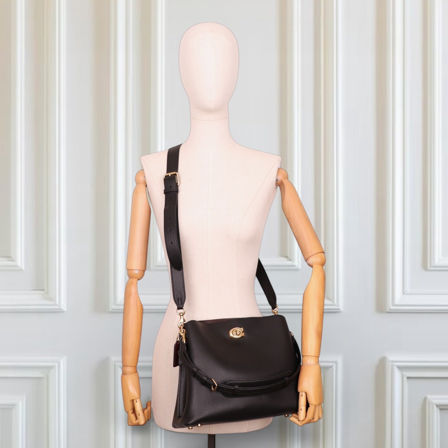 Zeitlos, strukturiert und elegant: Die „Willow“ von Coach ist eine moderne Interpretation der klassischen City-Bag. Mit ihrer klaren Linienführung, dem hochwertigen Leder und den goldfarbenen Details vereint sie Stil, Funktionalität und Alltagstauglichkeit auf elegante Weise.