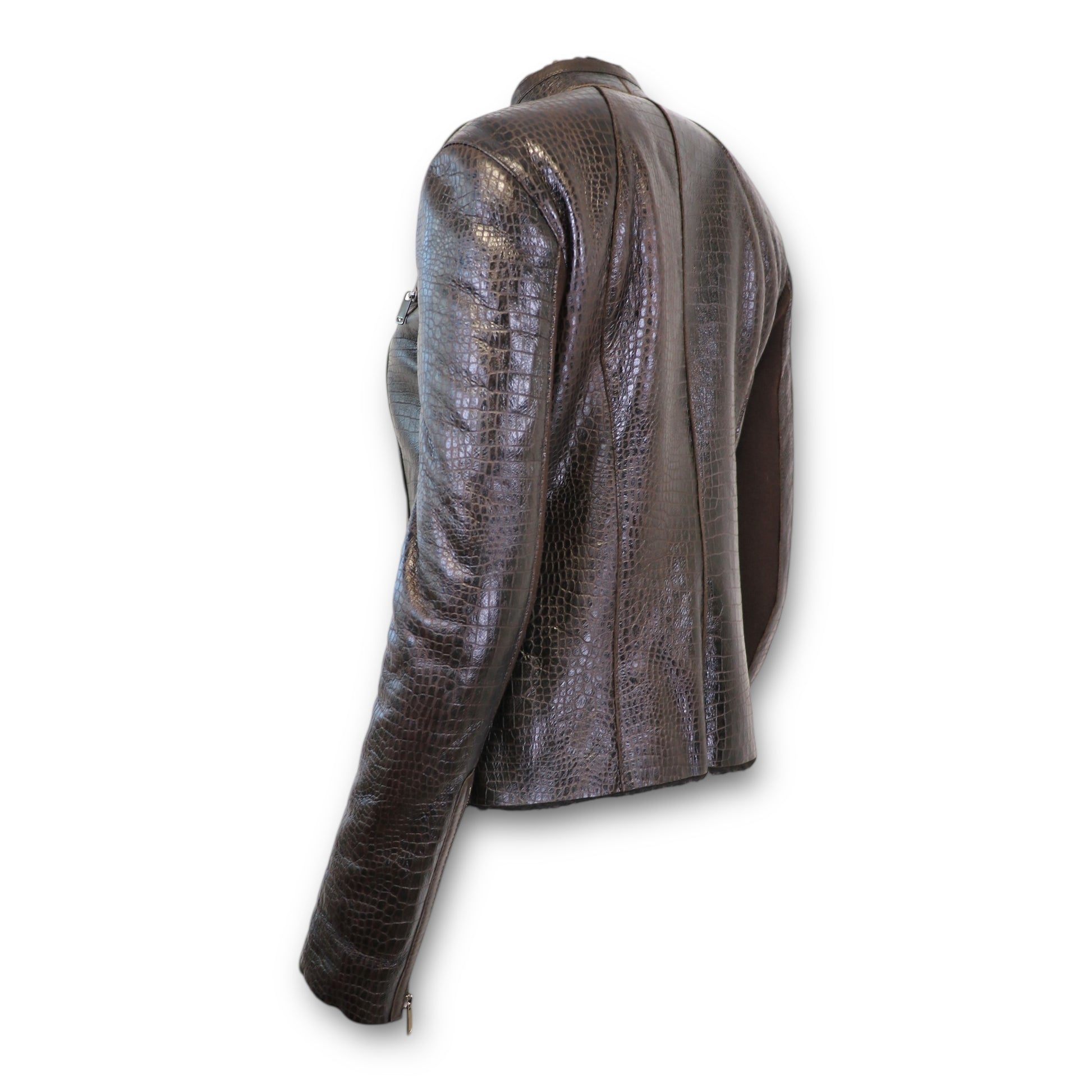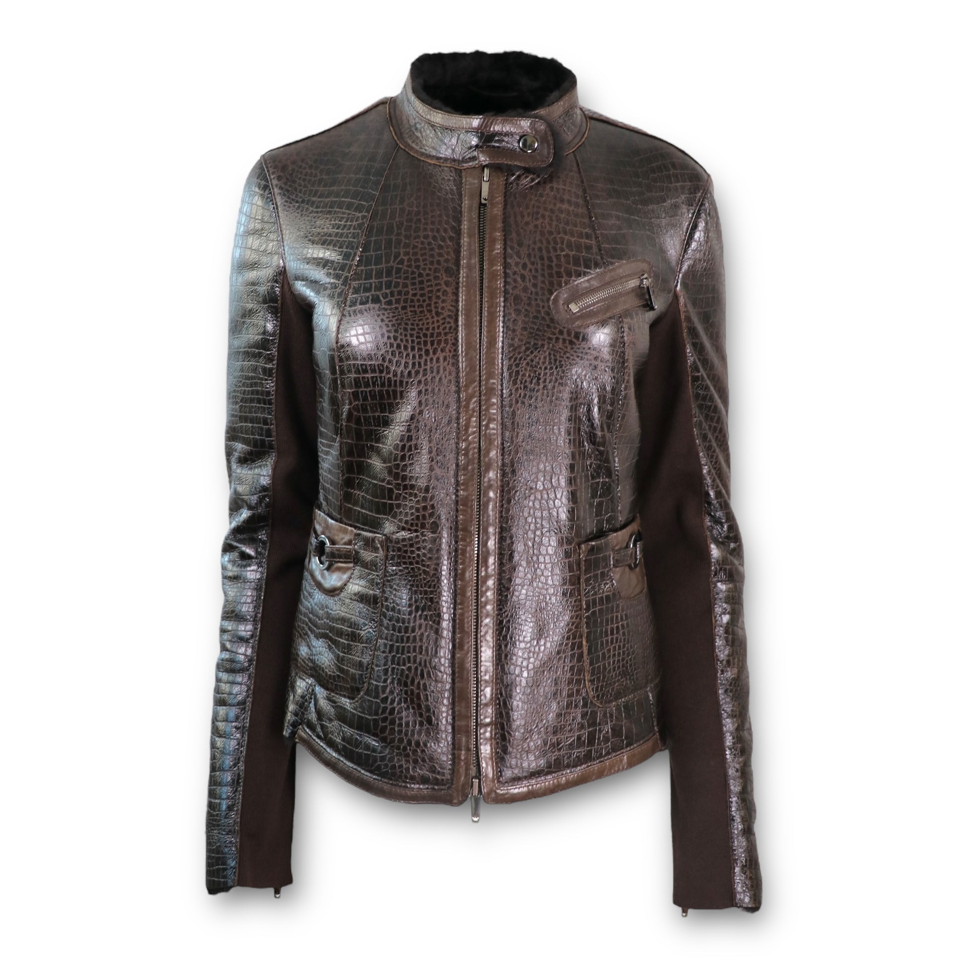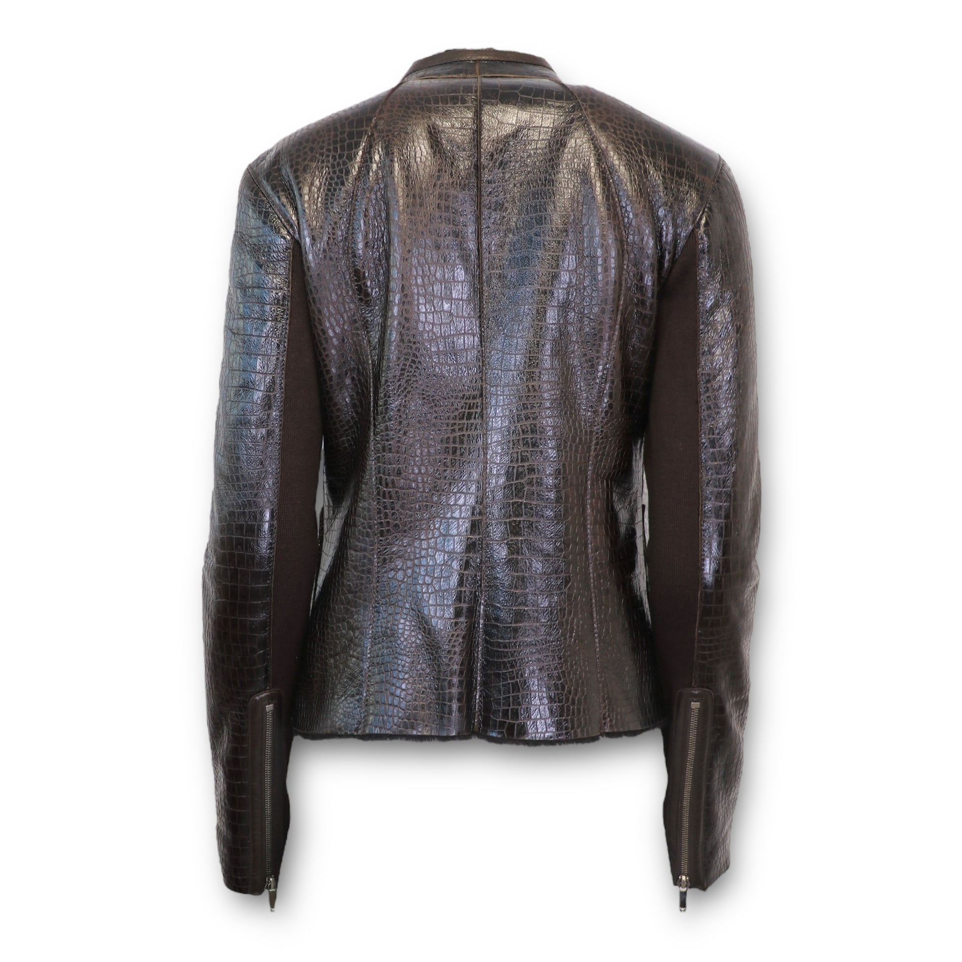 Diese luxuriöse Jacke von Emporio Armani vereint markante Eleganz mit höchstem Tragekomfort. Gefertigt aus feinstem Lammleder, beeindruckt sie durch ihre edle, krokodilgeprägte Oberfläche, die dem Design eine außergewöhnliche Struktur und Tiefe verleiht.