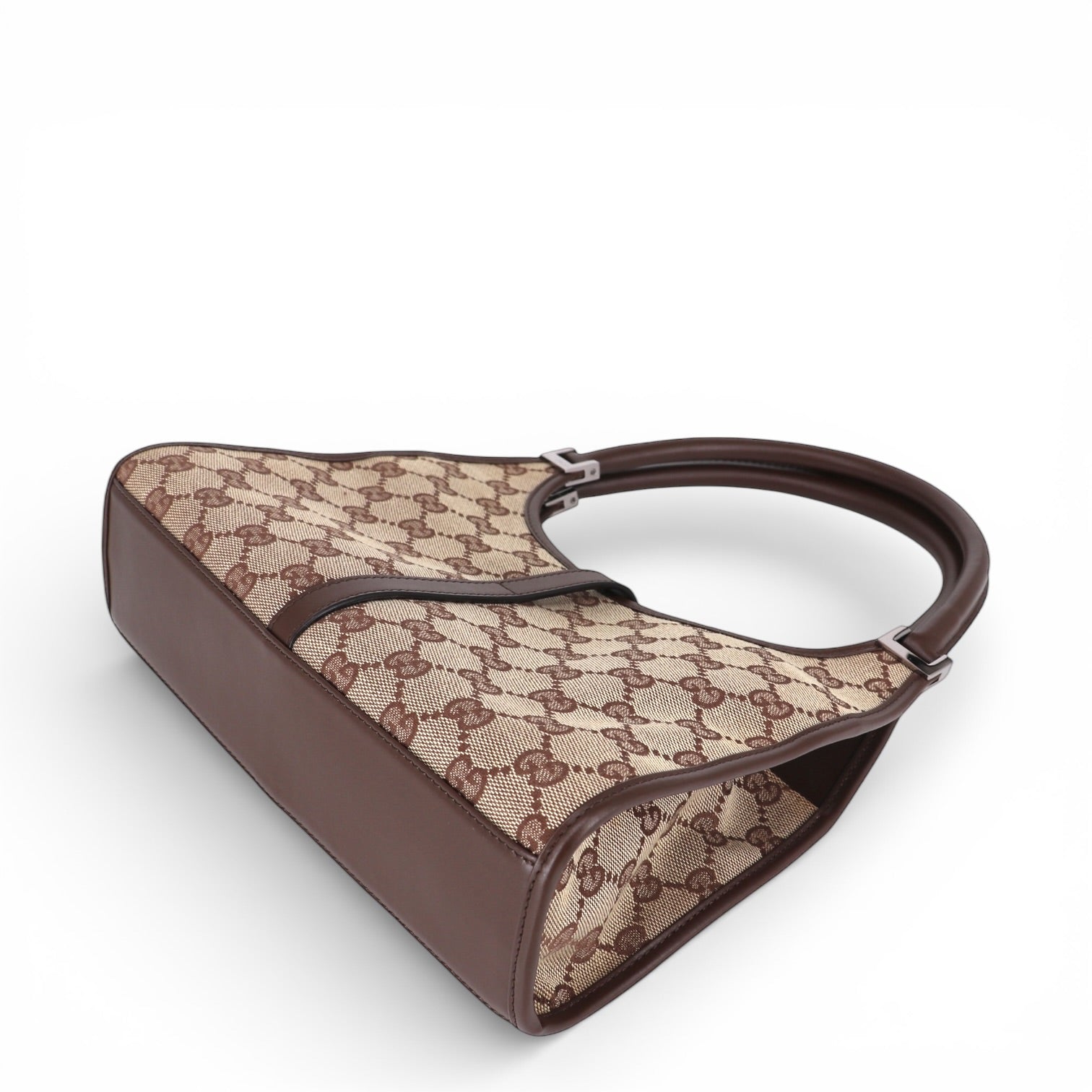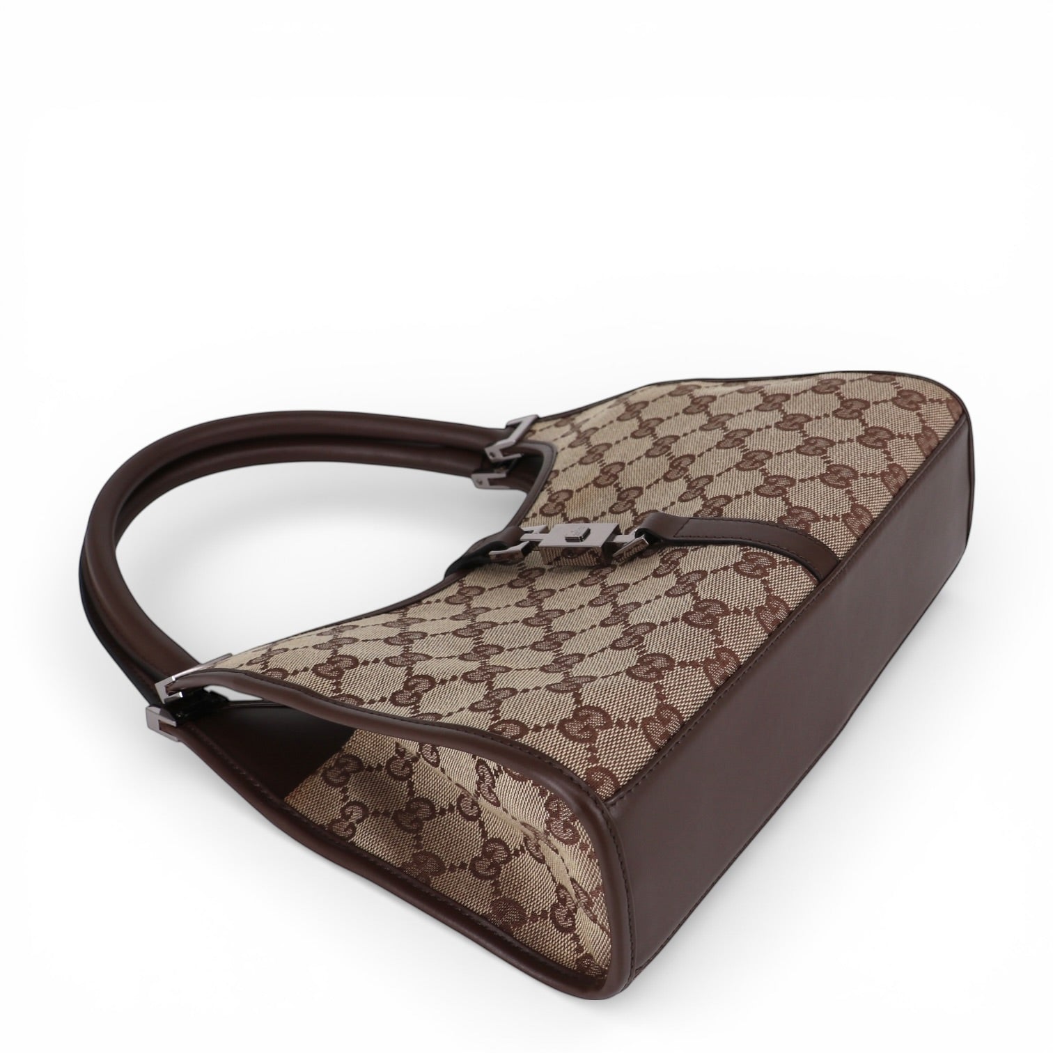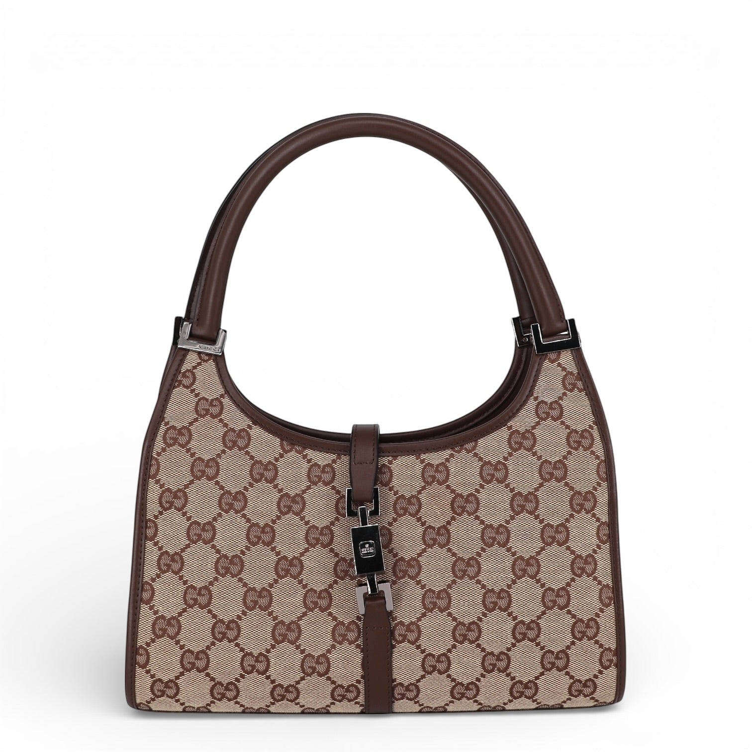 Gefertigt aus dem charakteristischen GG Textil in Beige-Braun zeigt die Tasche das ikonische Allover-Monogramm, das seit Jahrzehnten für Gucci steht. Das strukturierte Textil ist robust und zugleich stilvoll – ein Klassiker mit hohem Wiedererkennungswert.