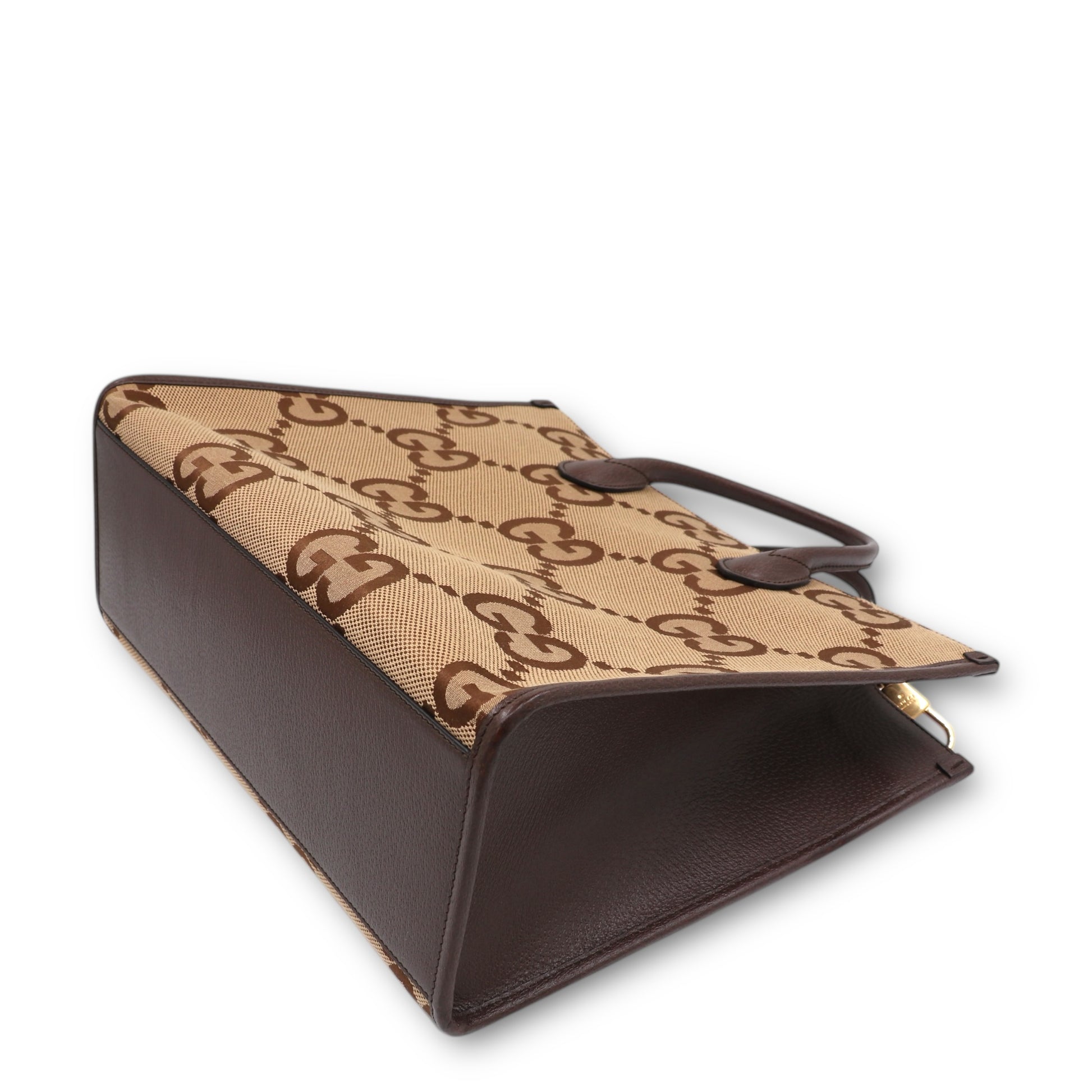 Dieser stilvolle Shopper von Gucci überzeugt durch eine gelungene Kombination aus ikonischem Design, hochwertiger Verarbeitung und hoher Alltagstauglichkeit. Gefertigt aus markantem Jumbo GG Canvas, präsentiert sich die Tasche mit dem vergrösserten GG-Muster, das sofort ins Auge fällt und den unverwechselbaren Charakter des Hauses Gucci widerspiegelt. Besätze aus braunem Rindsleder rahmen das Design elegant ein und sorgen für Stabilität sowie eine edle Optik.