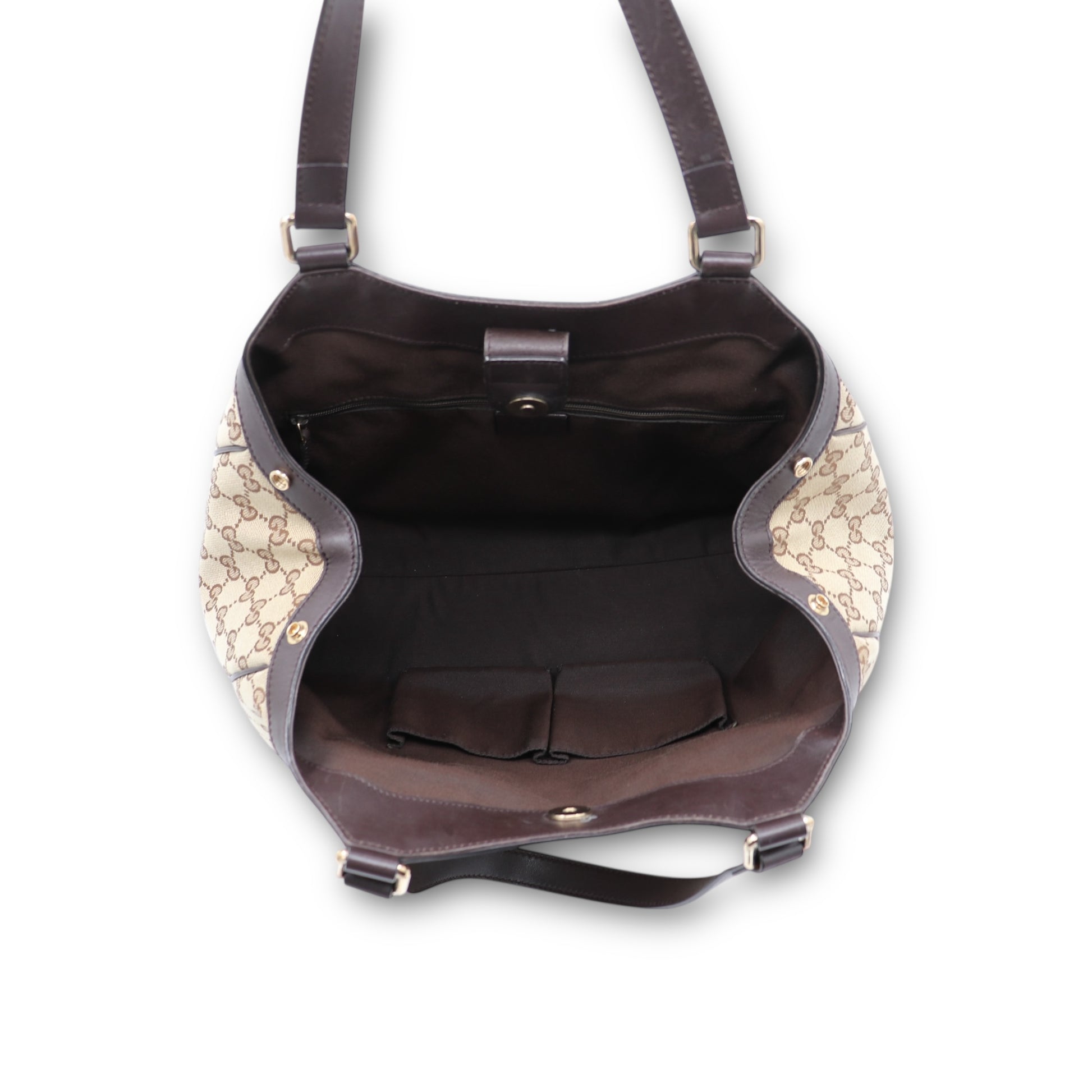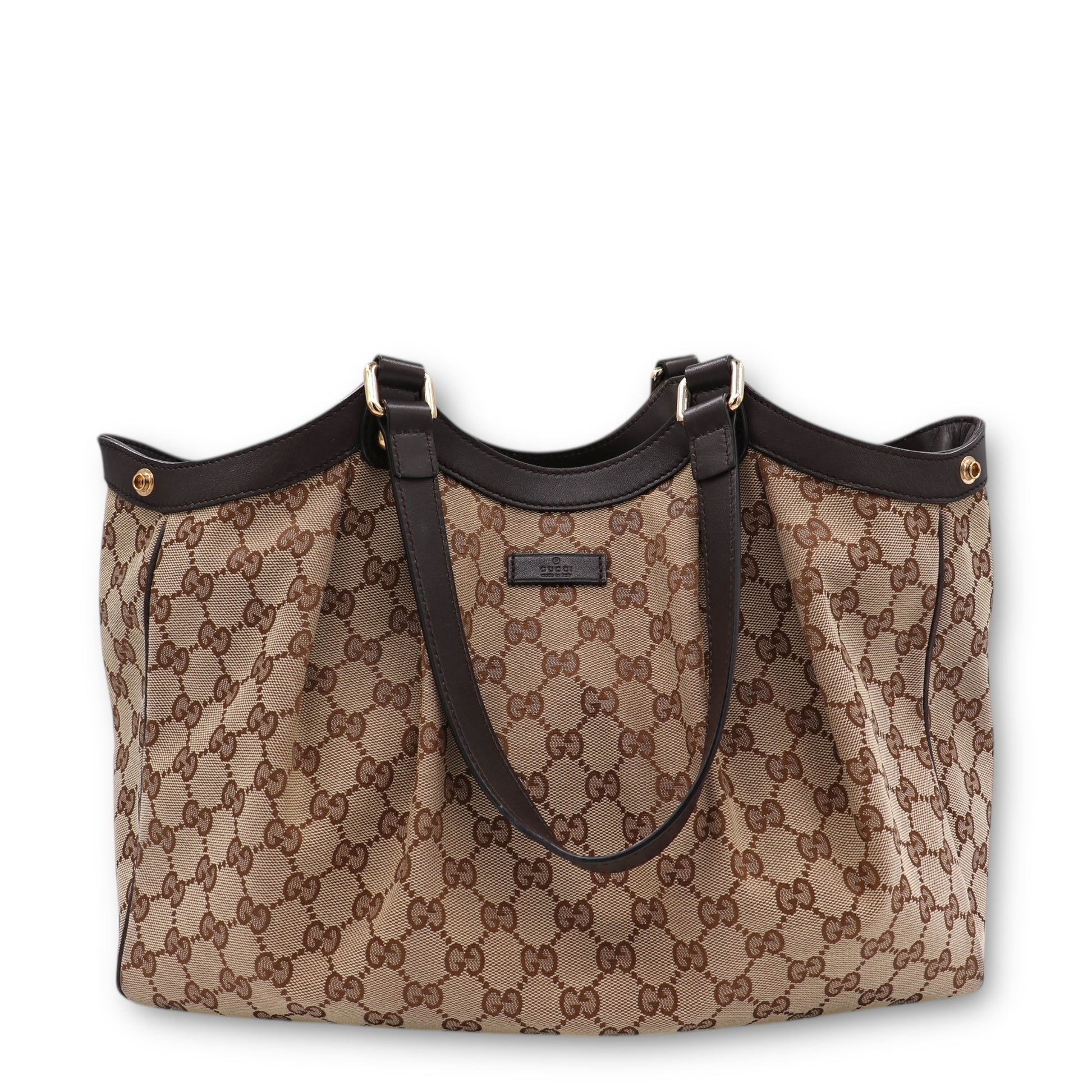 Diese stilvolle Schultertasche von Gucci vereint zeitlose Eleganz mit hoher Alltagstauglichkeit. Gefertigt aus hochwertigem gewobenem Canvas mit ikonischer GG-Einwebung, steht sie exemplarisch für das charakteristische Design der Marke und überzeugt durch ihre harmonische Farbgebung in Beige und Braun.