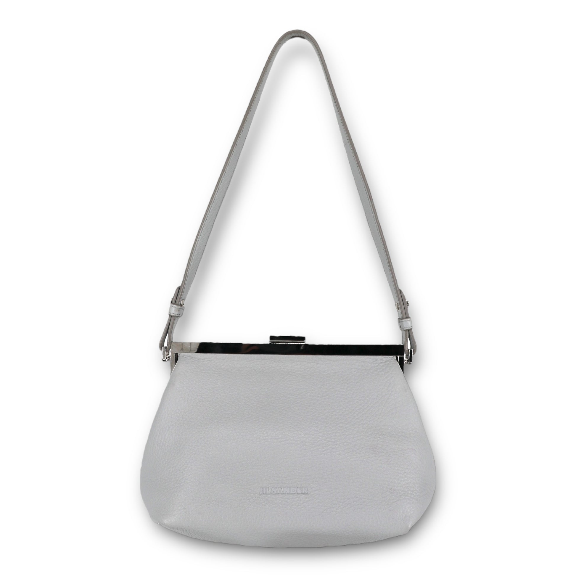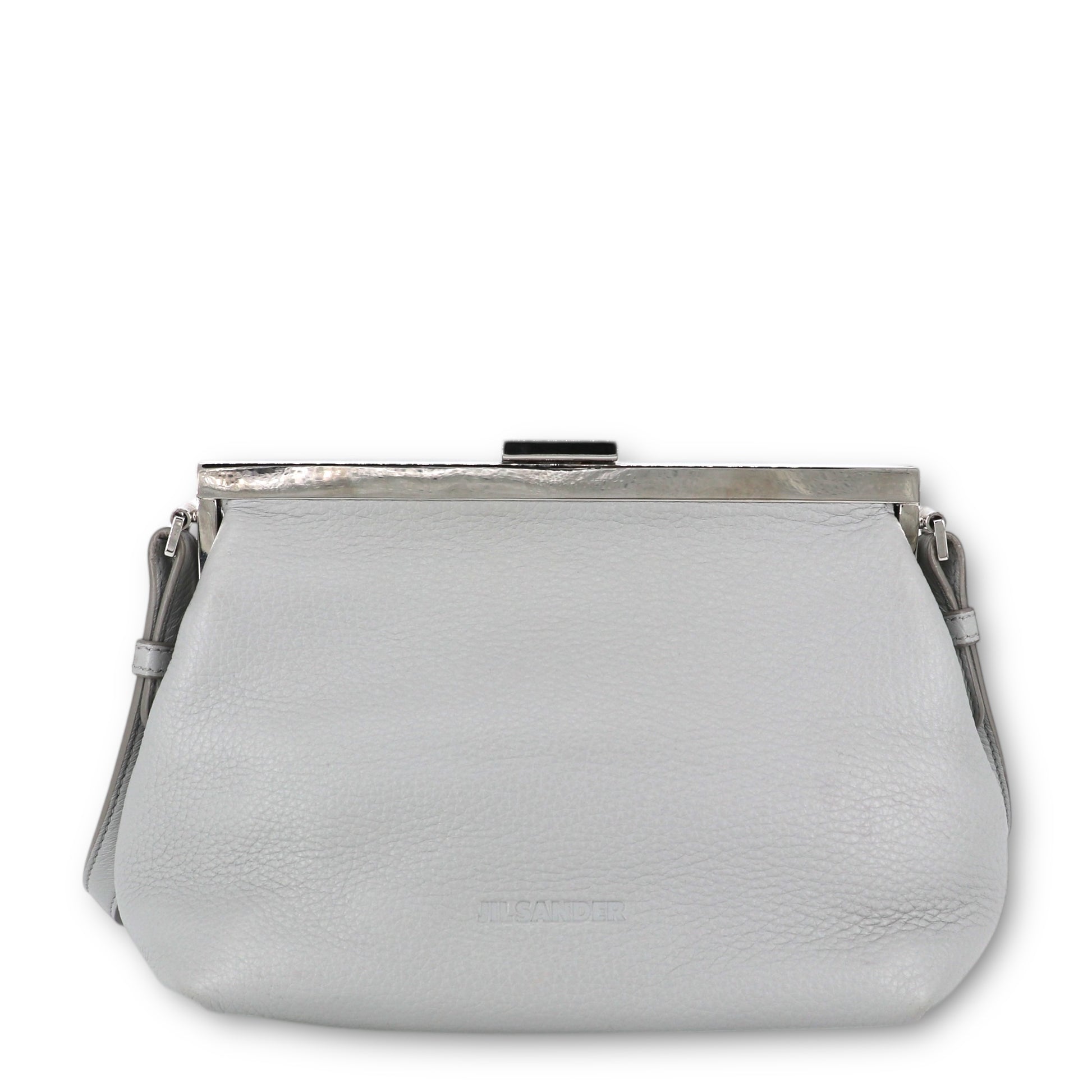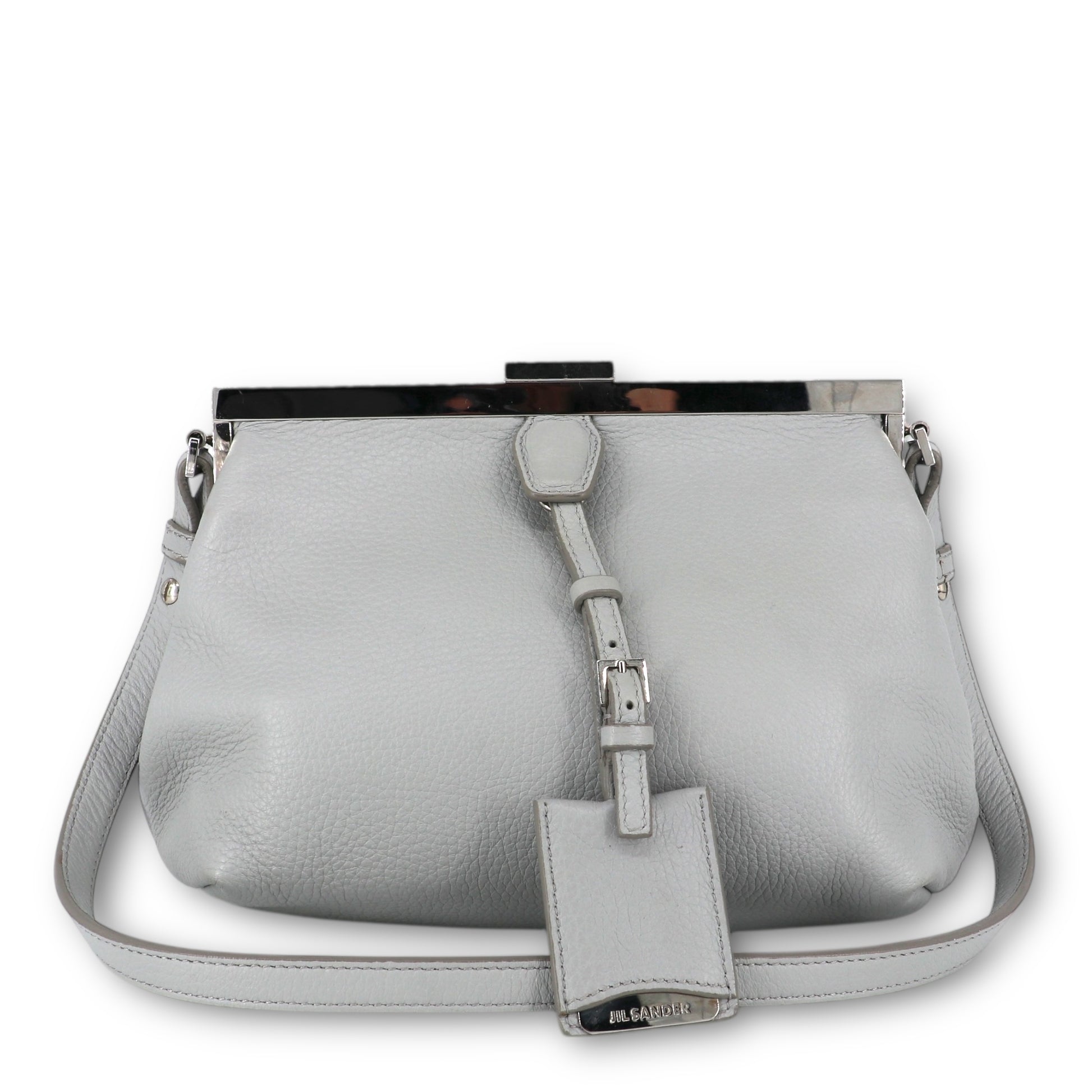 Diese minimalistische Jil Sander Tasche verkörpert die klare, zeitlose Ästhetik der Marke und überzeugt durch ihre schlichte Eleganz. Gefertigt aus hochwertigem weichem Leder in Hellgrau, besticht sie durch ihre puristische Form und die feine Struktur des Materials.