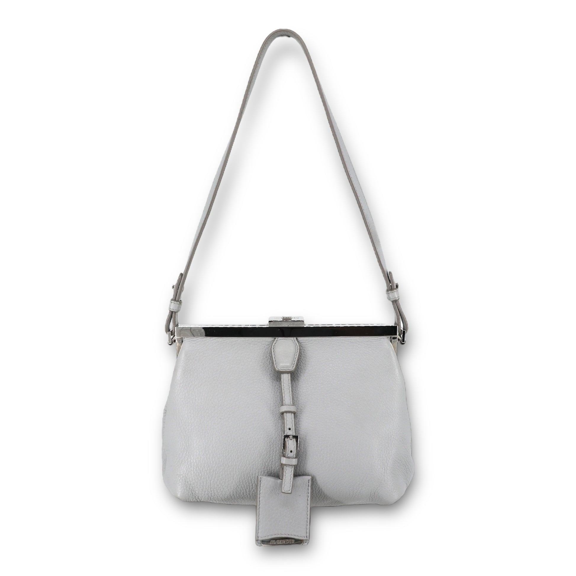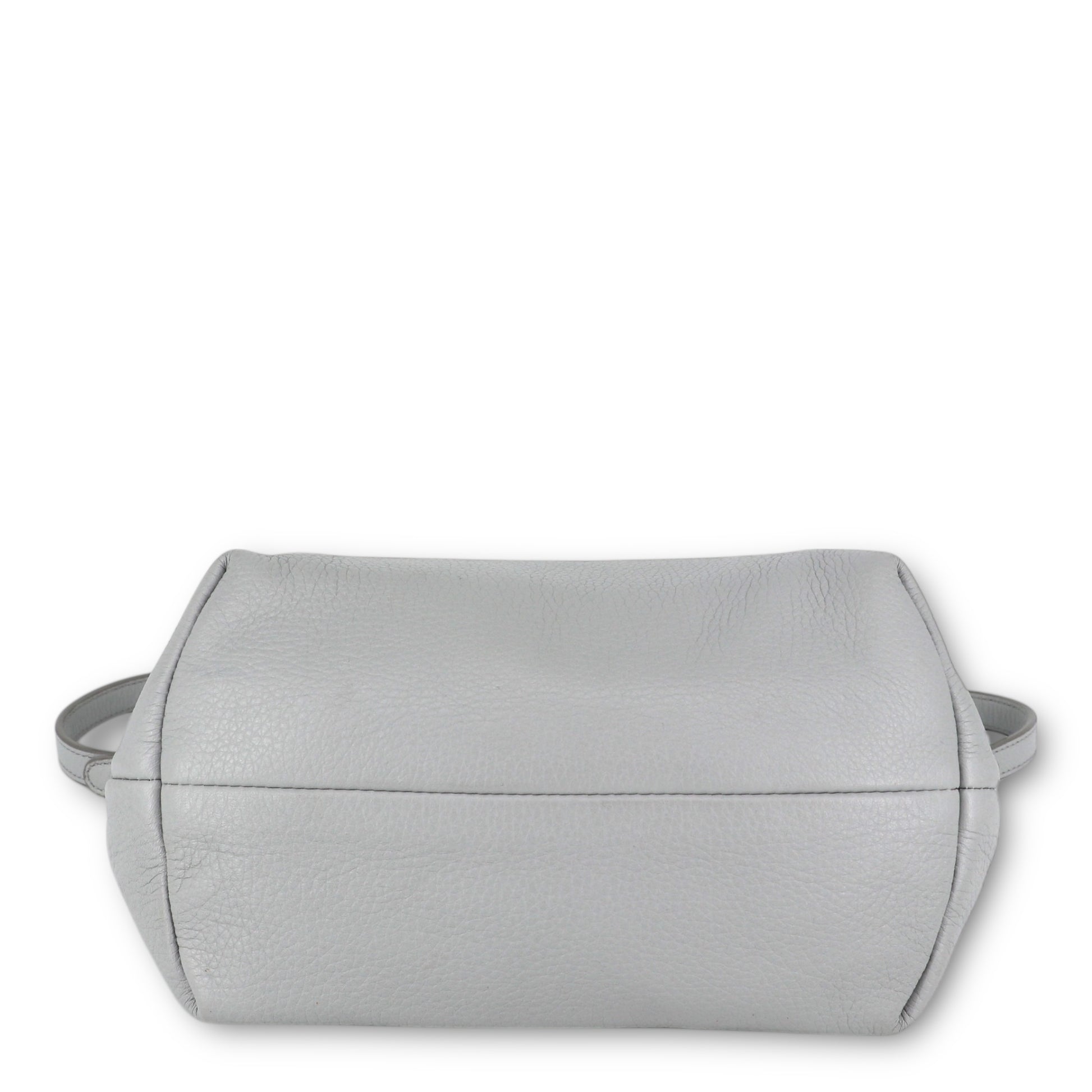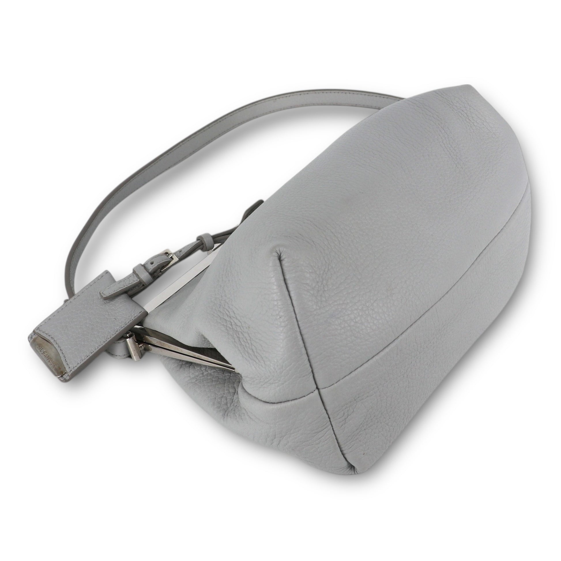 Diese minimalistische Jil Sander Tasche verkörpert die klare, zeitlose Ästhetik der Marke und überzeugt durch ihre schlichte Eleganz. Gefertigt aus hochwertigem weichem Leder in Hellgrau, besticht sie durch ihre puristische Form und die feine Struktur des Materials.