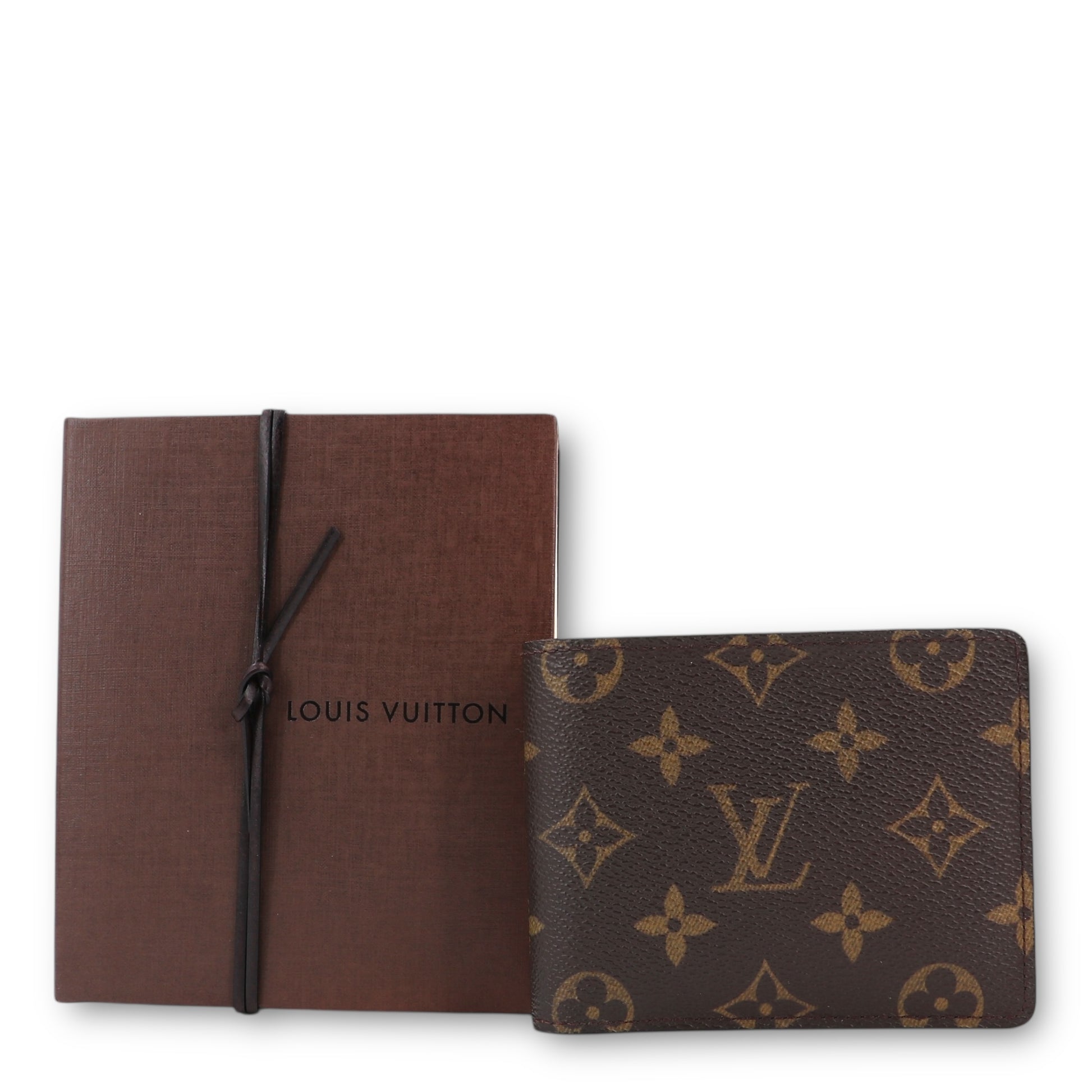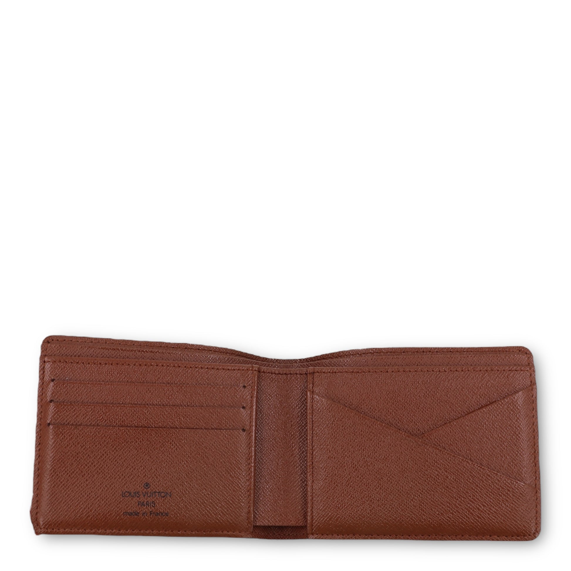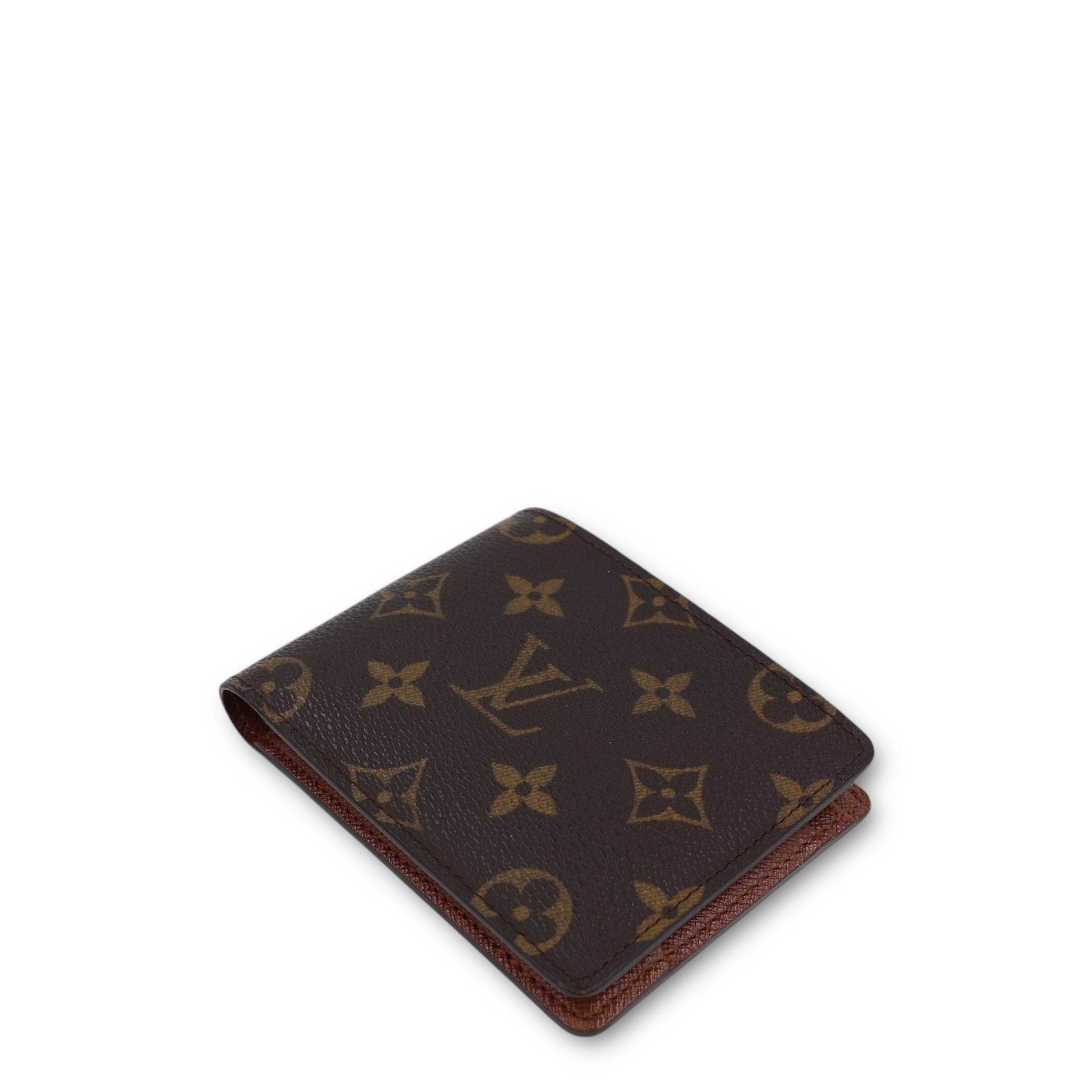 Das Aussenmaterial besteht aus dem bekannten Monogram Canvas, während das Innere mit braunem cross-grain Leder ausgekleidet ist. Es bietet fünf Kartenfächer, zwei flache Einschubfächer sowie zwei Fächer für Geldscheine für eine übersichtliche Aufbewahrung.