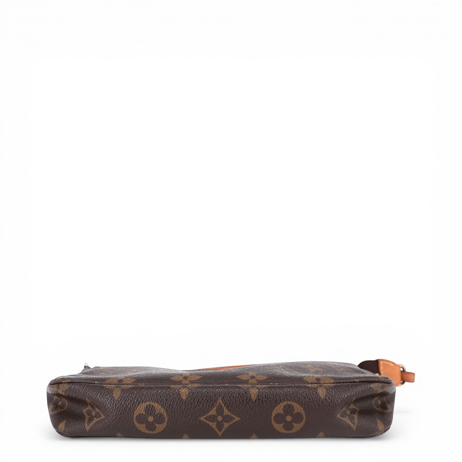 Die Tasche ist aus dem legendären Louis Vuitton Monogram Canvas gefertigt, das für seine Langlebigkeit und Widerstandsfähigkeit bekannt ist. Das ikonische Monogramm aus LV-Initialen und floralen Elementen macht die Pochette zu einem sofort erkennbaren Designerstück.