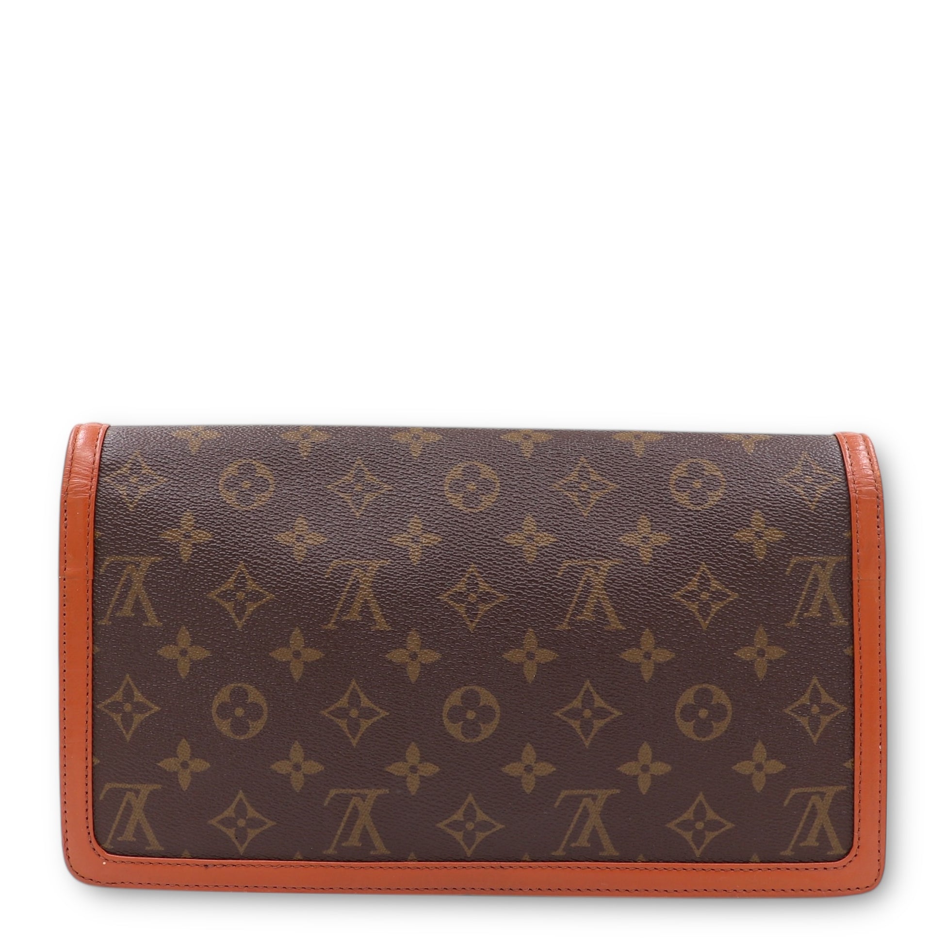 Gefertigt aus dem ikonischen Monogram Canvas, überzeugt die Tasche durch ihre robuste Qualität und den unverwechselbaren Look. Die Besätze aus braunem Leder rahmen die Silhouette stilvoll ein und verleihen dem Design eine warme, edle Note. Die klare, flache Form macht dieses Modell besonders vielseitig – ideal für den Alltag wie auch für elegante Anlässe.