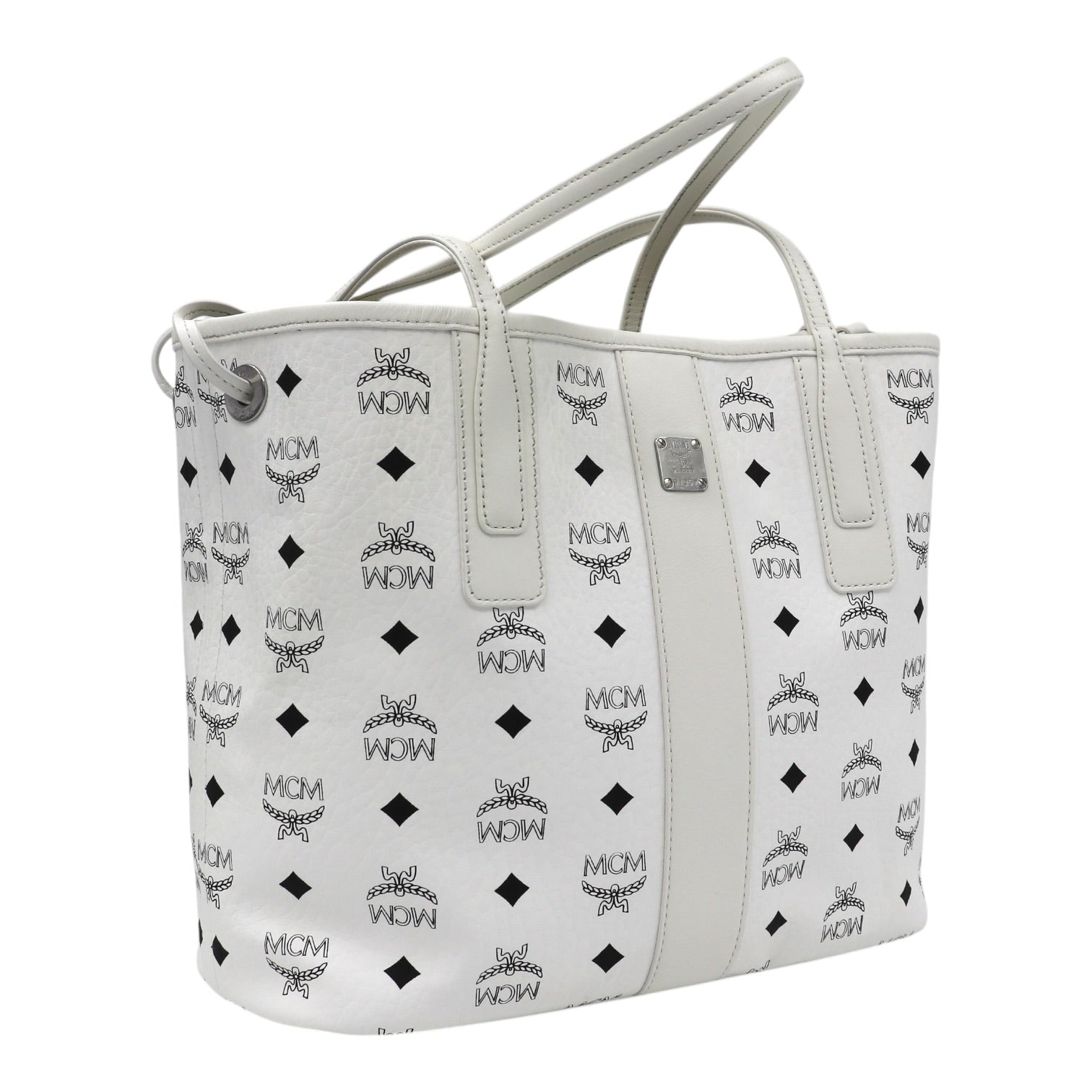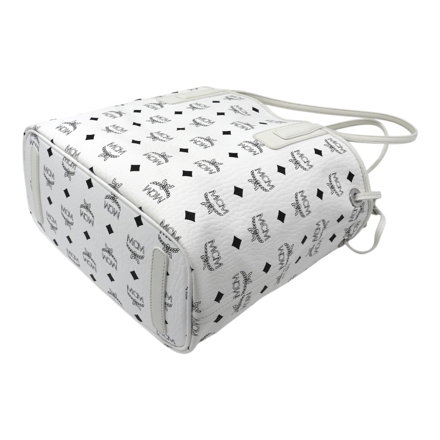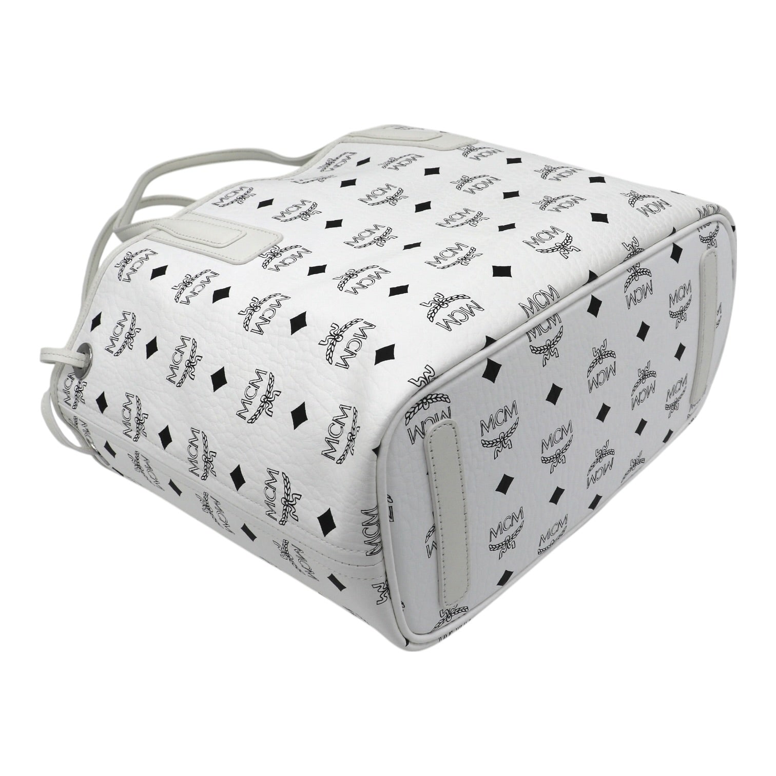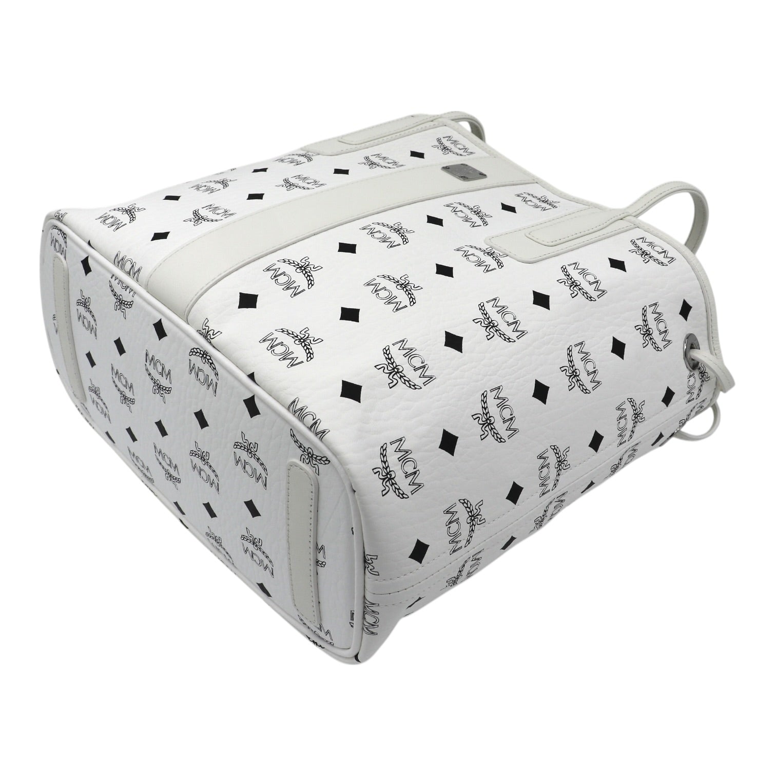 Gefertigt ist der Shopper auf der einen Seite aus weißem Visetos Canvas, verziert mit dem charakteristischen MCM-Monogramm und den ikonischen Lorbeerkranz-Motiven. Die elegante, helle Farbgebung verleiht der Tasche eine frische, luxuriöse Ausstrahlung und macht sie zu einem stilvollen Begleiter für jede Saison.