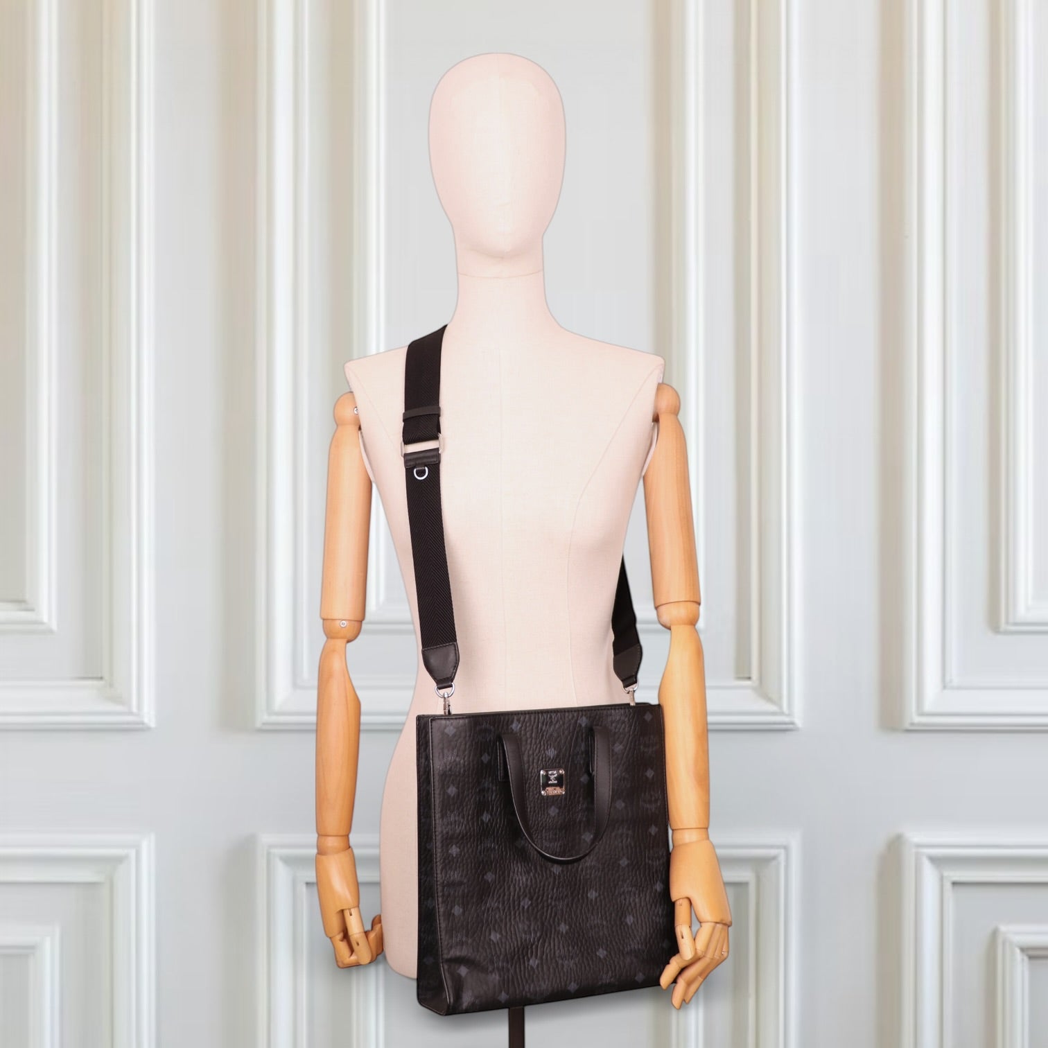 Gefertigt aus schwarzem Visetos Canvas, zeigt die Tasche das unverkennbare MCM-Monogramm mit Lorbeerkranz und Rautenmotiv. Das beschichtete Canvas ist strapazierfähig, pflegeleicht und langlebig – ideal für den täglichen Gebrauch.