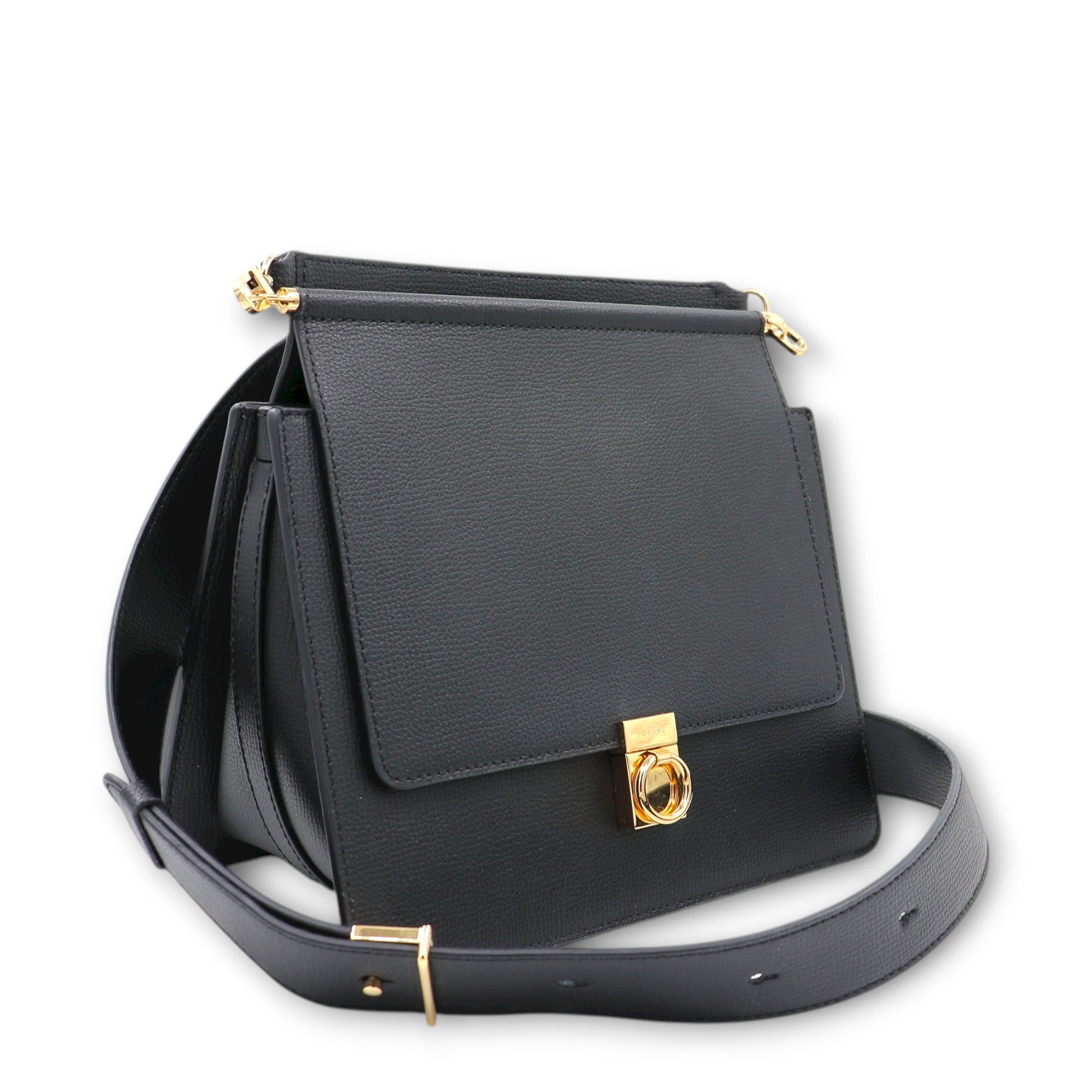 Die kompakte, jedoch ausreichend geräumige Form bietet genügend Stauraum für alle wichtigen Dinge, während die klare, geometrische Form der Tasche jedem Outfit eine stilvolle Note verleiht.