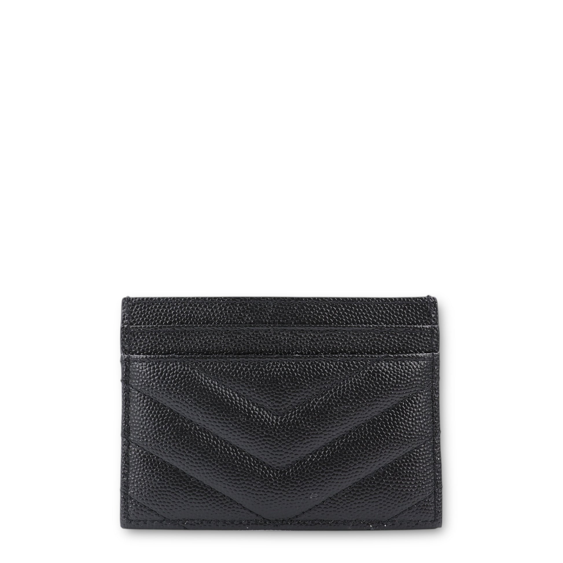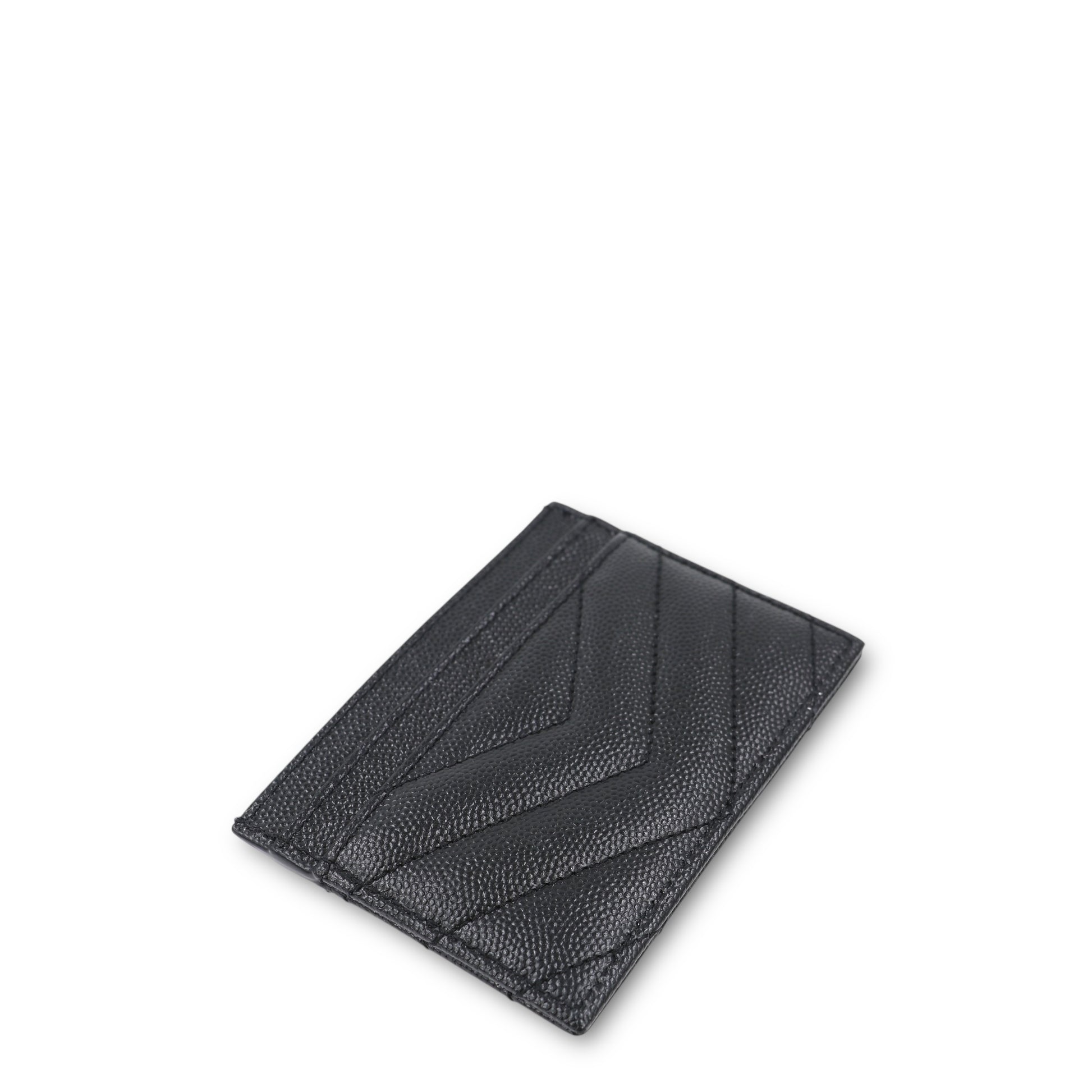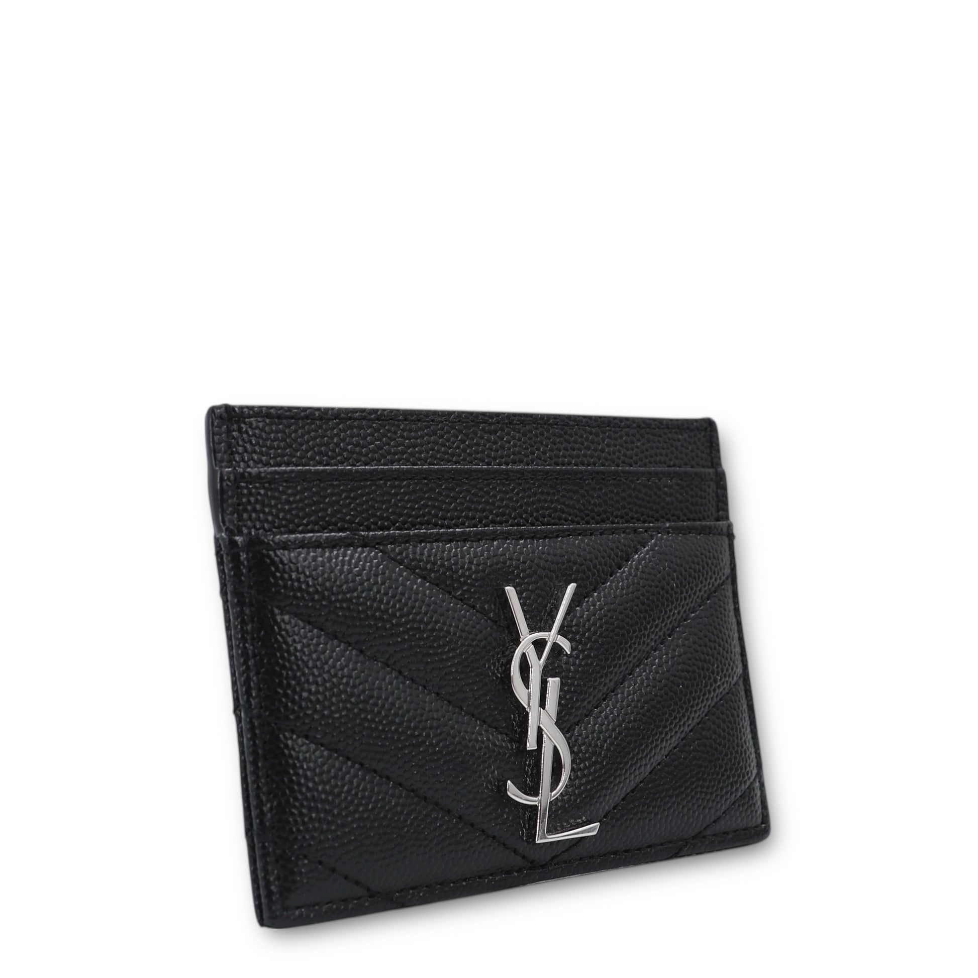 Dieses einzigartige gesteppte Kartenetui von Saint Laurent ist aus luxuriösem Kalbsleder in tiefem schwarz gefertigt. Mit dem charakteristischen silberfarbenen Logo auf der Vorderseite und fünf praktischen Einschubfächern ist es der perfekte Begleiter für stilbewusste Frauen und Männern.