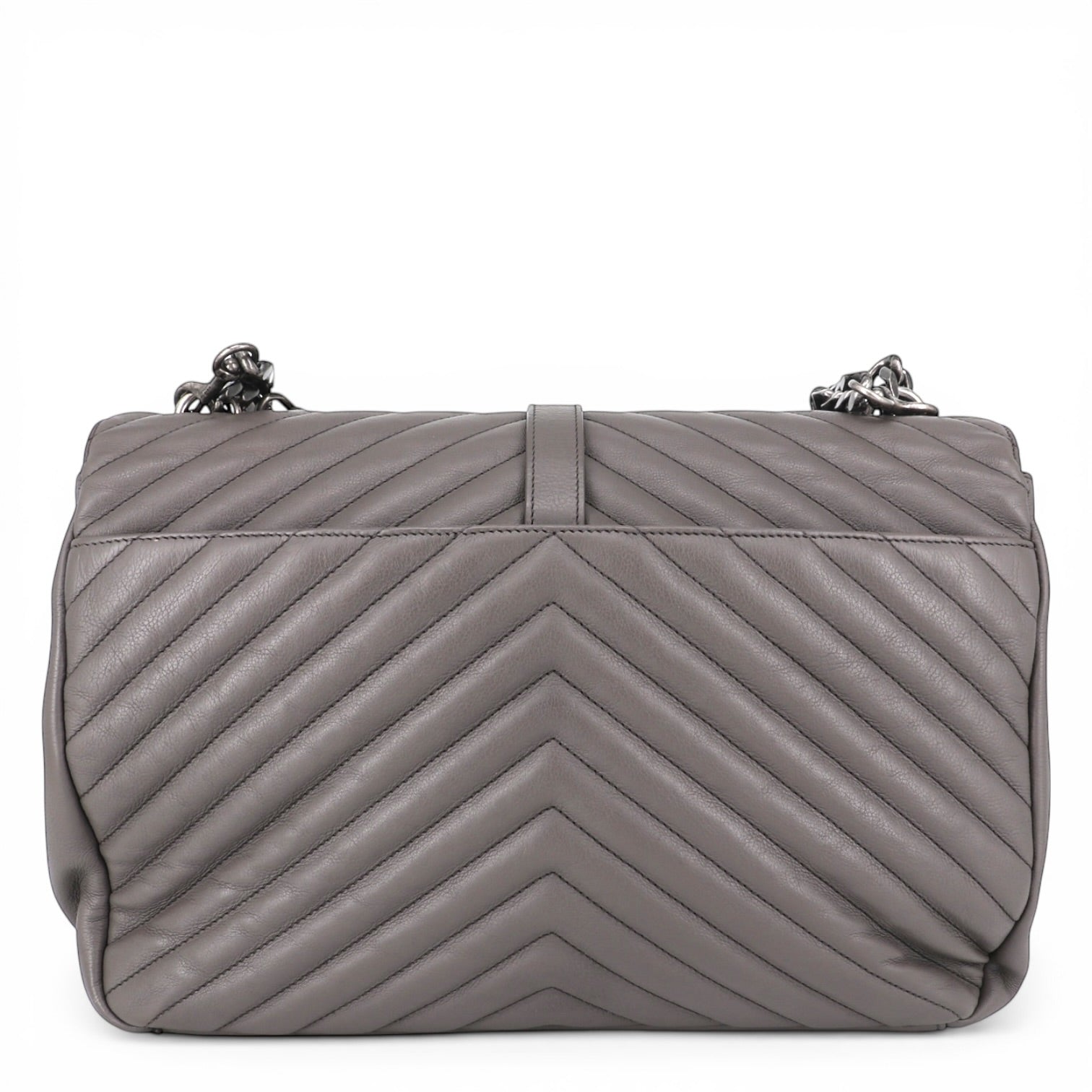 Die Saint Laurent College Large ist ein elegantes und zugleich modernes Modell des französischen Modehauses Saint Laurent. Mit ihrem charakteristischen Chevron-Steppmuster, dem ikonischen YSL-Logo und der markanten Kettenhardware verbindet diese Tasche klassische Eleganz mit urbanem Chic.