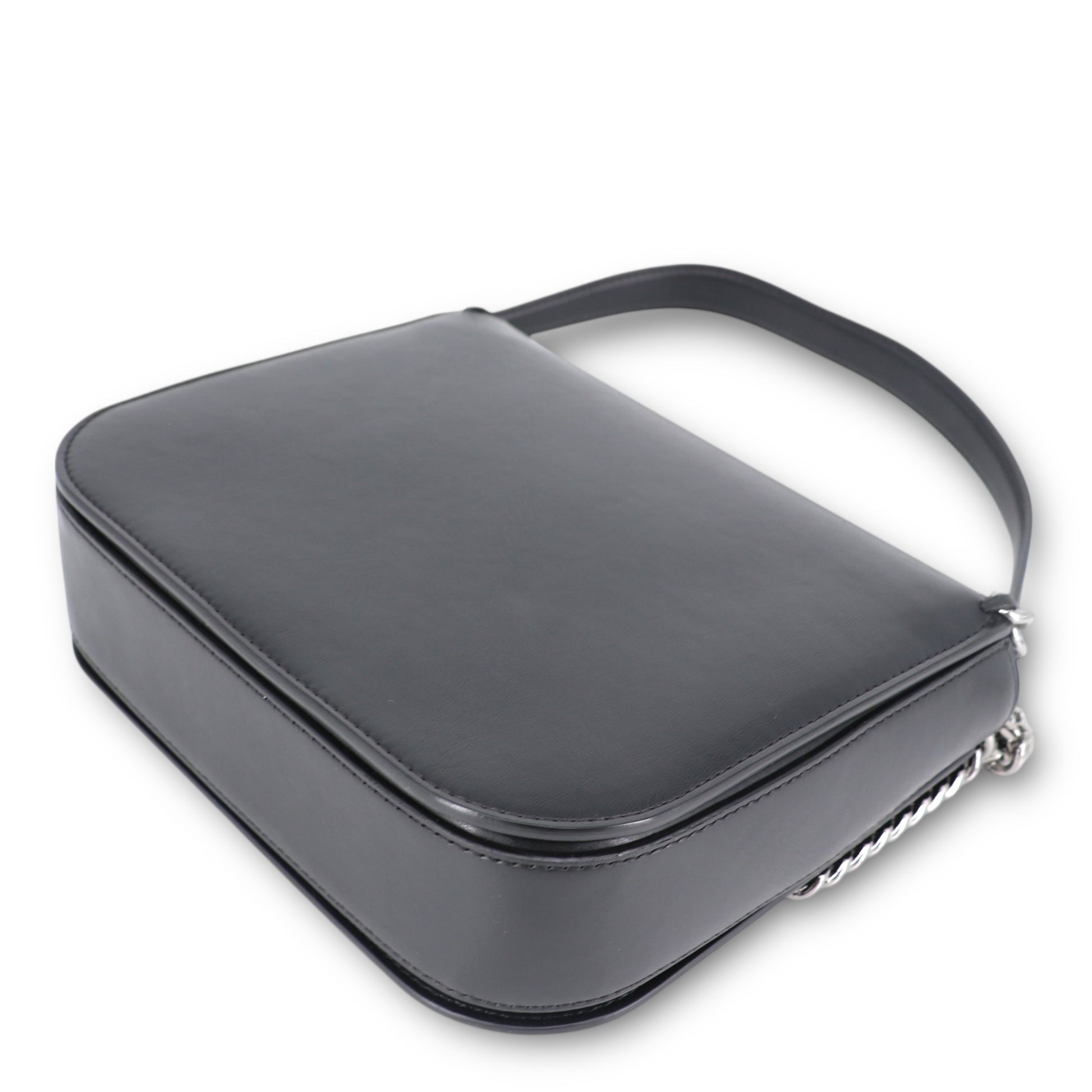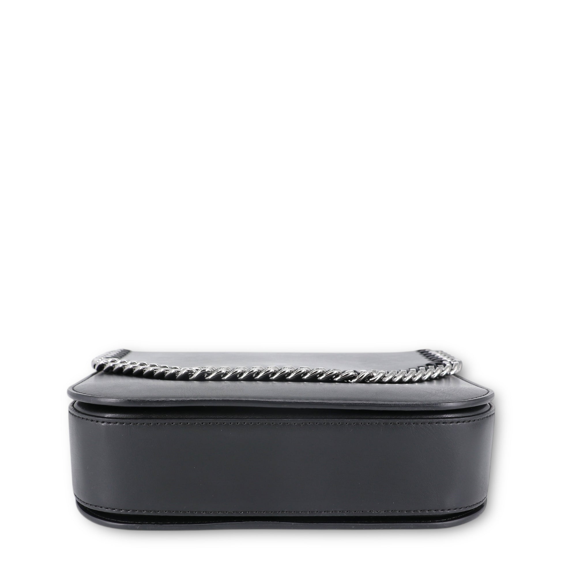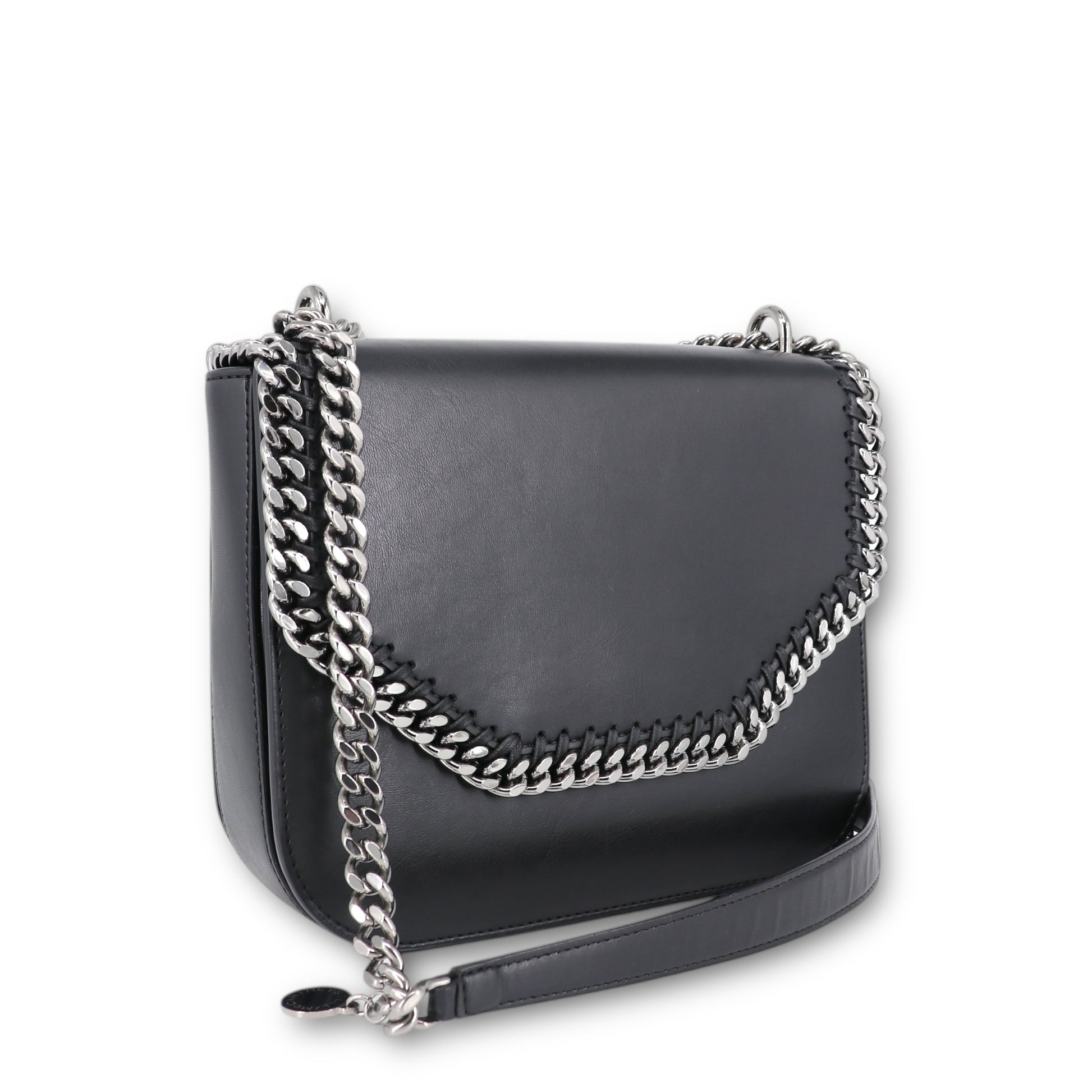 Aussen präsentiert sich die Tasche in schwarzem, veganem Leder mit praktischem Magnetverschluss. Der silberfarbene Kettenriemen verfügt über ein Schulterpolster und kann sowohl einfach als auch doppelt getragen werden. Im Inneren sorgt das rote Textilfutter für einen markanten Kontrast und bietet mit einem grossen Hauptfach, einem flachen Einschubfach sowie insgesamt drei Unterteilungen optimale Organisation.