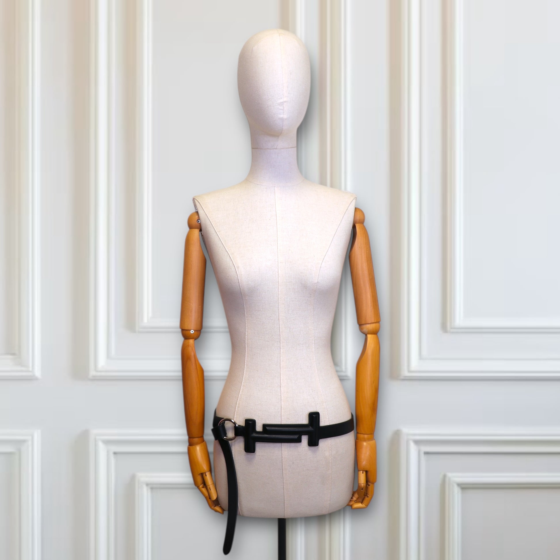 Der Gürtel ist mit Grösse 85 angeschrieben, lässt sich jedoch variabel tragen. Mit einer Gesamtlänge von 126 cm und einer Gurtbreite von 2.7 cm bietet er vielseitige Tragemöglichkeiten – perfekt zu Jeans, Stoffhosen oder über Blazern. Die prägnante Schnalle misst ca. 8.5 x 19.5 cm und verleiht dem Look eine moderne, architektonische Note.